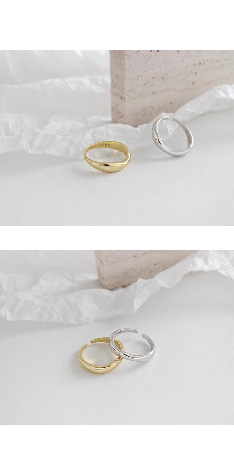 Кольца XIYANIKE с серебряным покрытием и асимметричными волнами, мо...