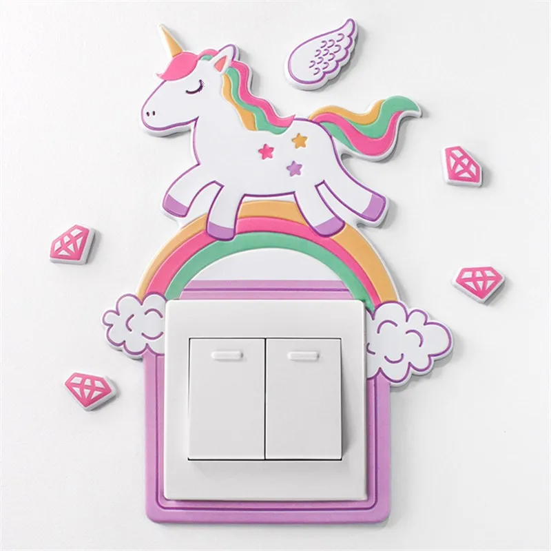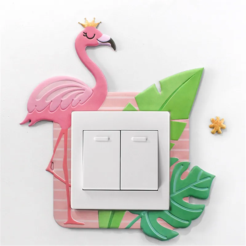 Животное Единорог Фламинго крышка мультфильм декор комнаты 3D Настенный силиконовый переключатель ВКЛ-ВЫКЛ светящийся светильник ключатель выход Настенная Наклейка