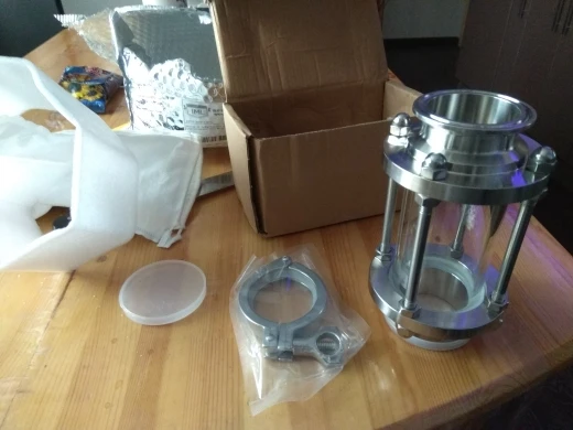 Пришел заказ за 7 дней, с доставкой курьером до квартиры!!! Упакован отлично, отдельно защищено стекло. Пришло в целости и сохранности. качество отличное. Визуально фланца не перекошены. В комплекте кламп и прокладка, как и заказывал. Спасибо продавцу. рекомендую 5 звезд.