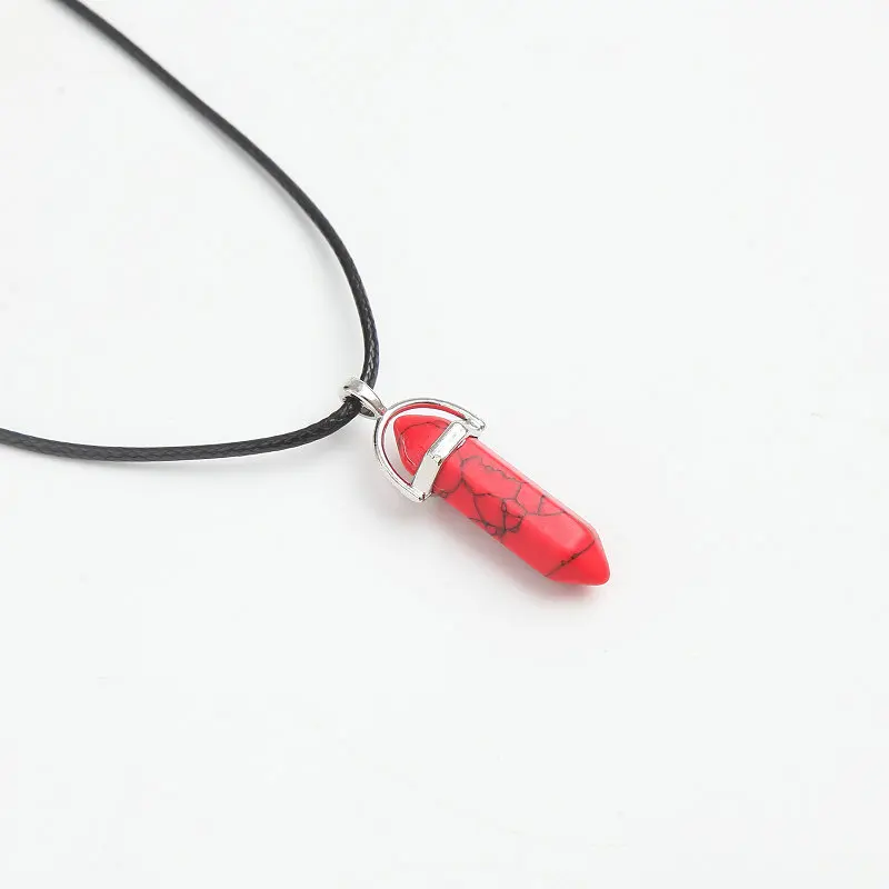 Ожерелье-цепочка из кожаного шнура, ожерелья с шестигранной колонно...
