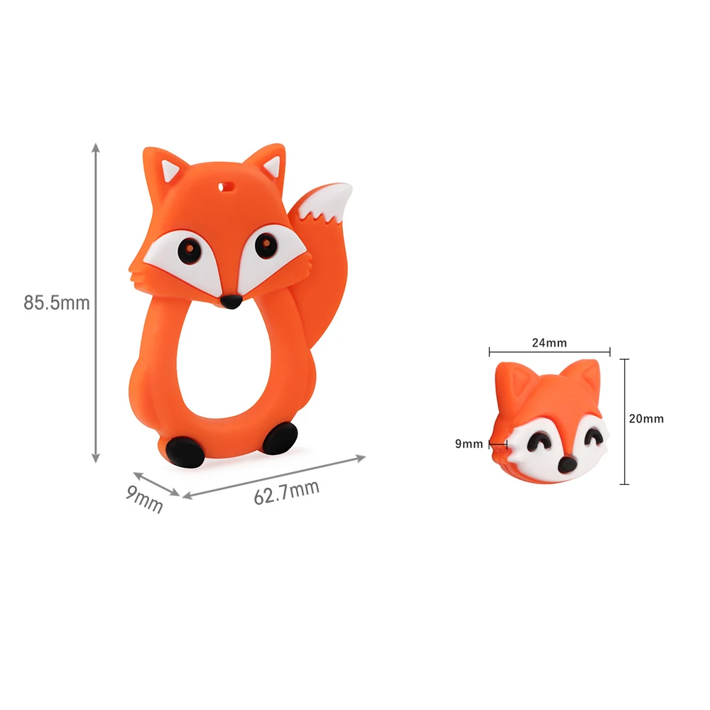 50 шт., силиконовые бусины для прорезывания зубов в виде лисы