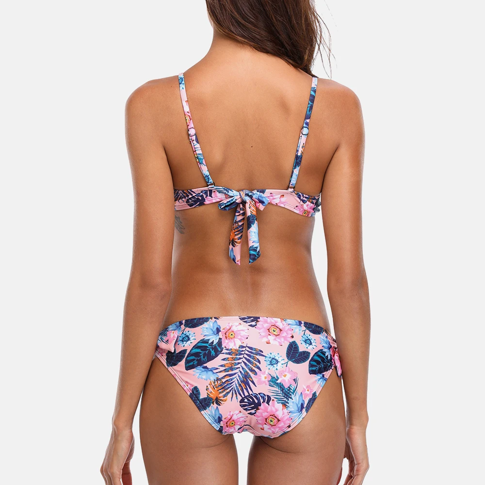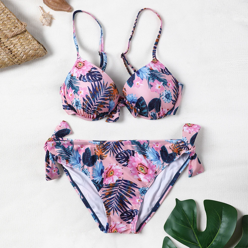 Женский купальник бикини с цветочным принтом и чашками пуш-ап
