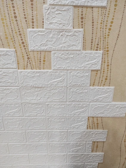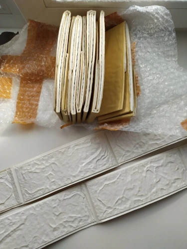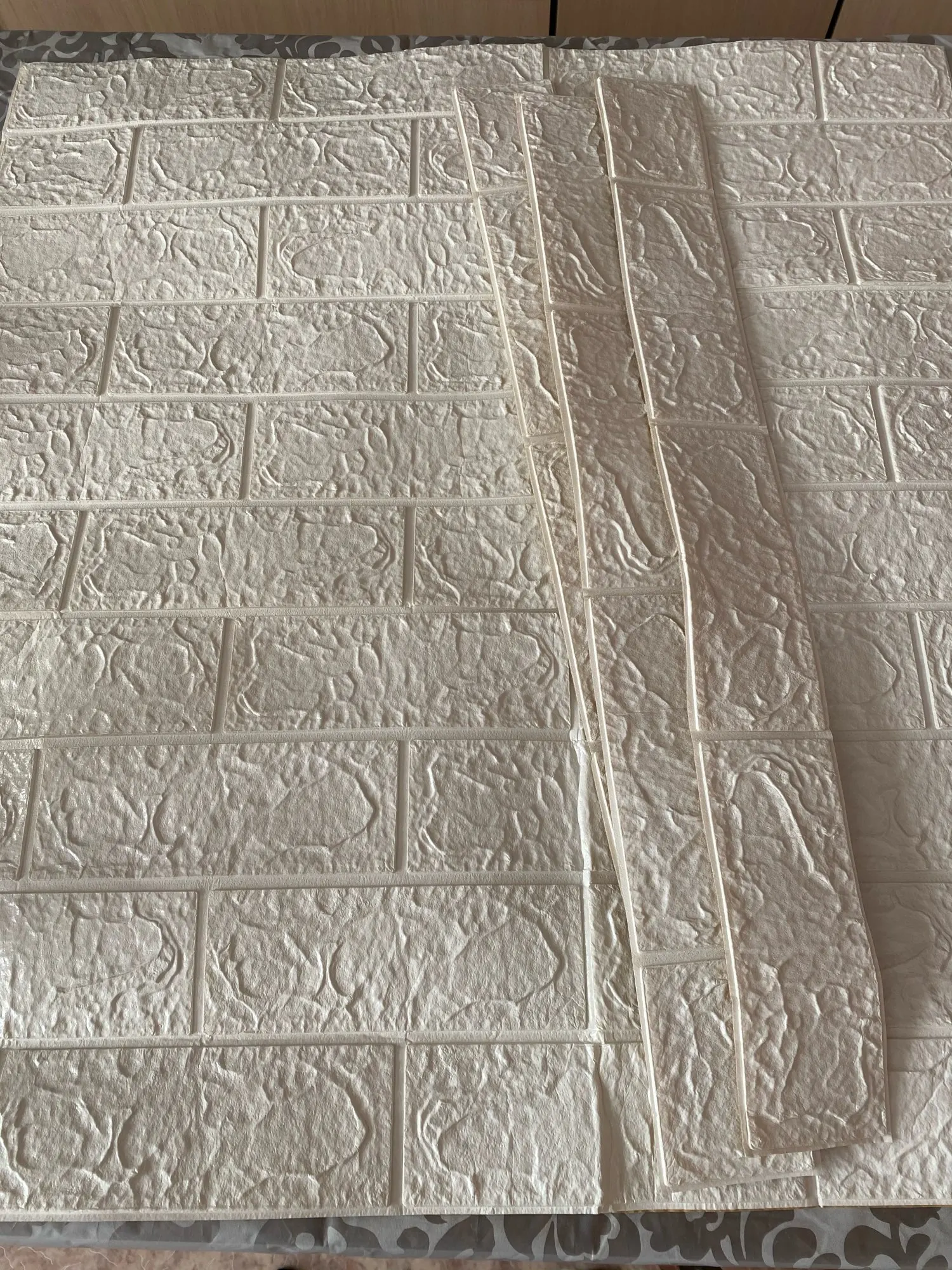 Супер обои! Продавец вообще молодец, перед отправкой сам связался и предупредил, что заказ большой и он будет разбит на 3 посылки. Все посылки отслеживается на все пути. Повреждений обоев не было, помятости исчезают после поклейки. На бетоне/голой стене пластины держатся прочно, на объемных обоях могут чуть отклеиться, но буквально уголок, не страшно. Также если клеить на контрастные обои/стены, то слегка будет виден переход. Есть небольшая прозрачность. В остальном они выглядят шикарно на стене, теперь хочется всю квартиру обклеить