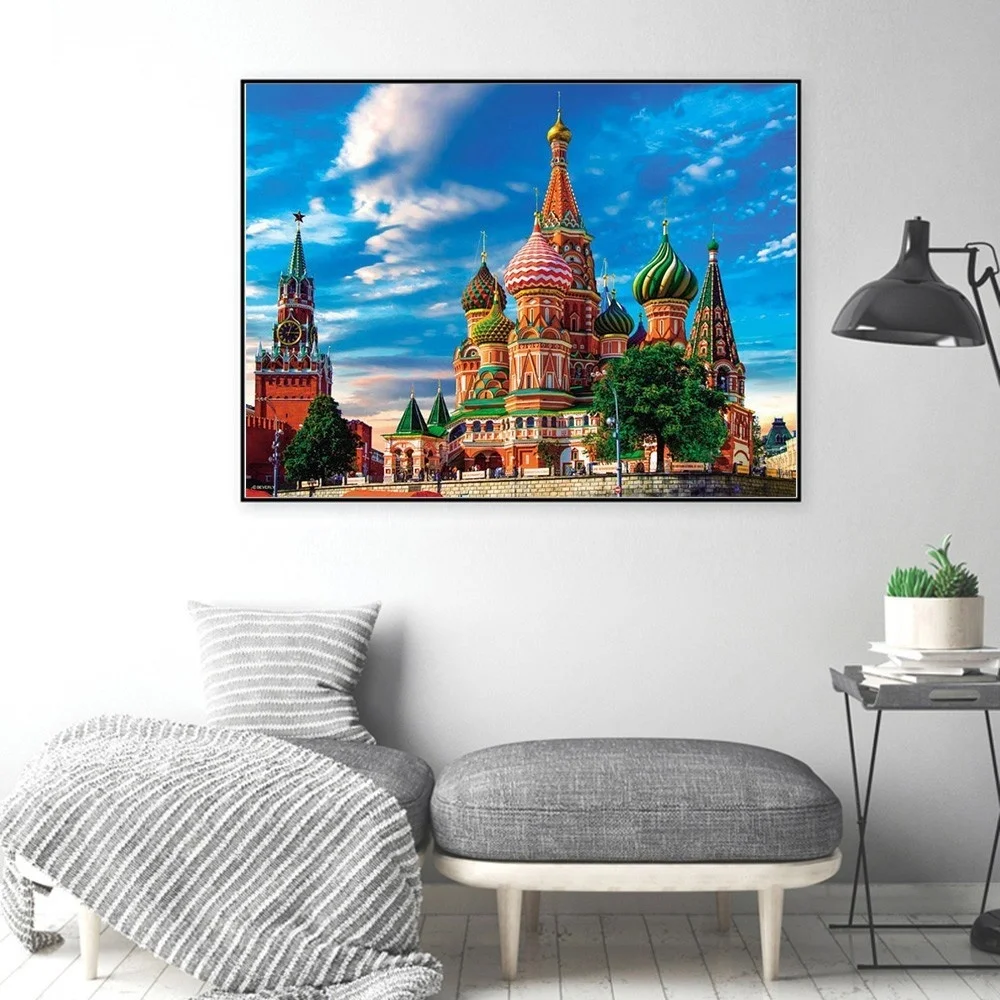 Алмазная 5D живопись Huacan, живописная картина с изображением Московской церкви, Алмазная мозаика, картина, стразы, Прямая поставка