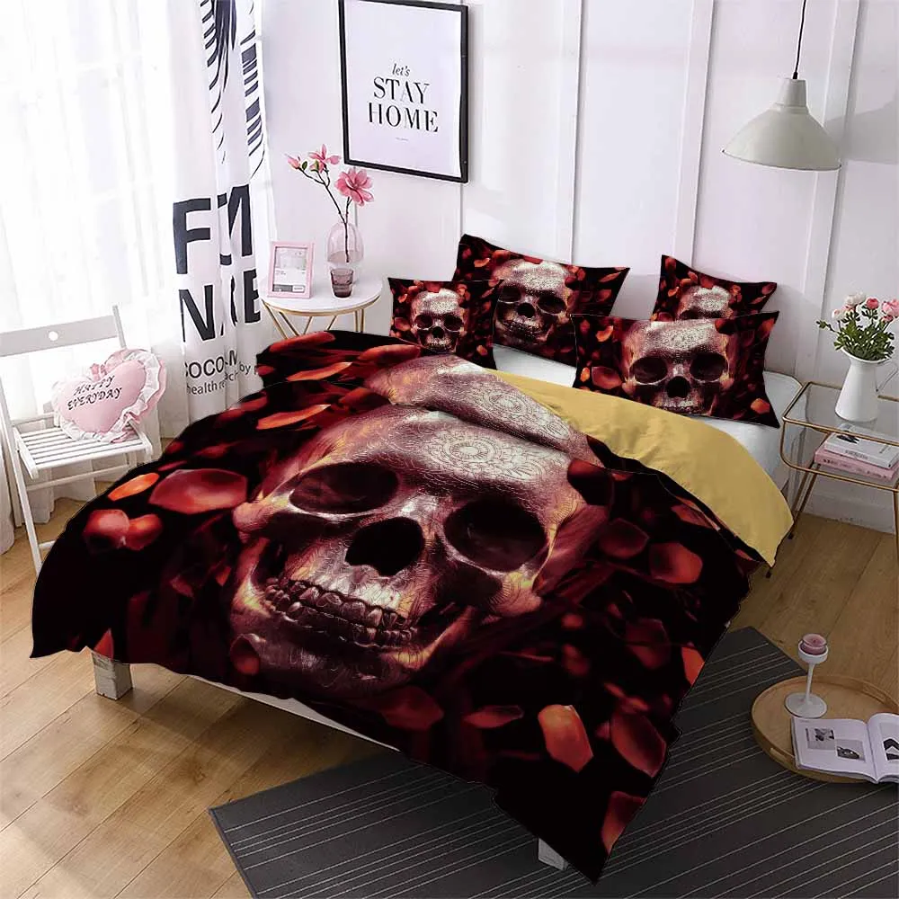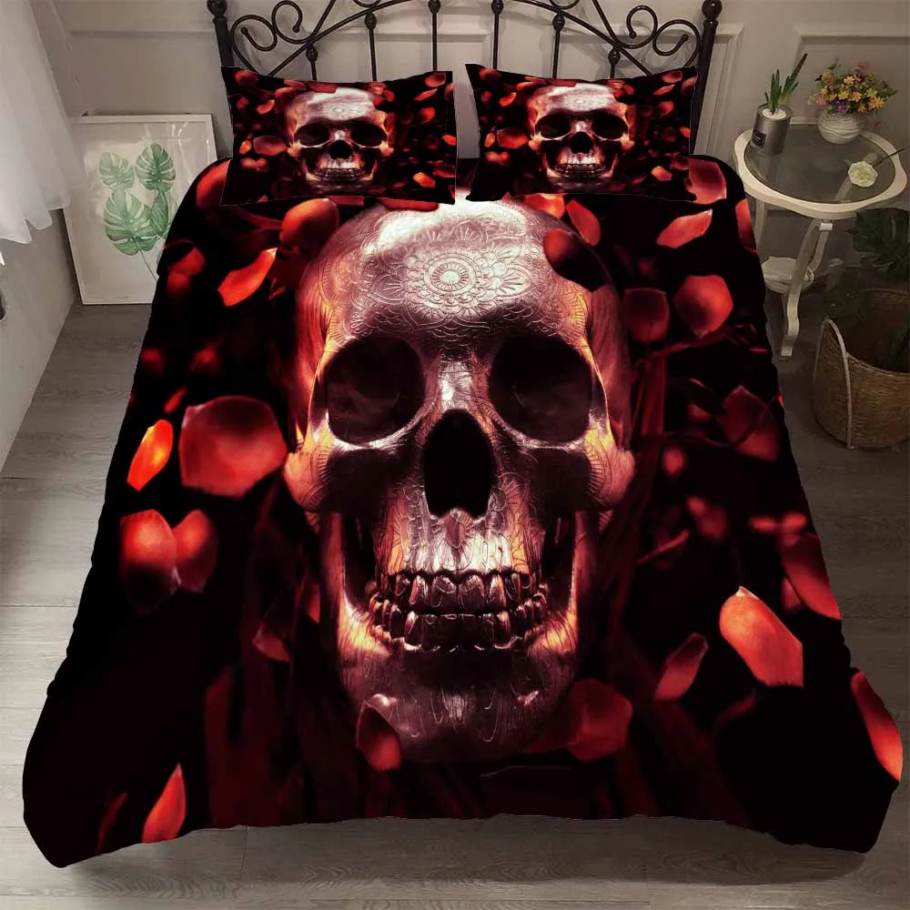 Комплект постельного белья с черепами, готический набор пододеяльни...
