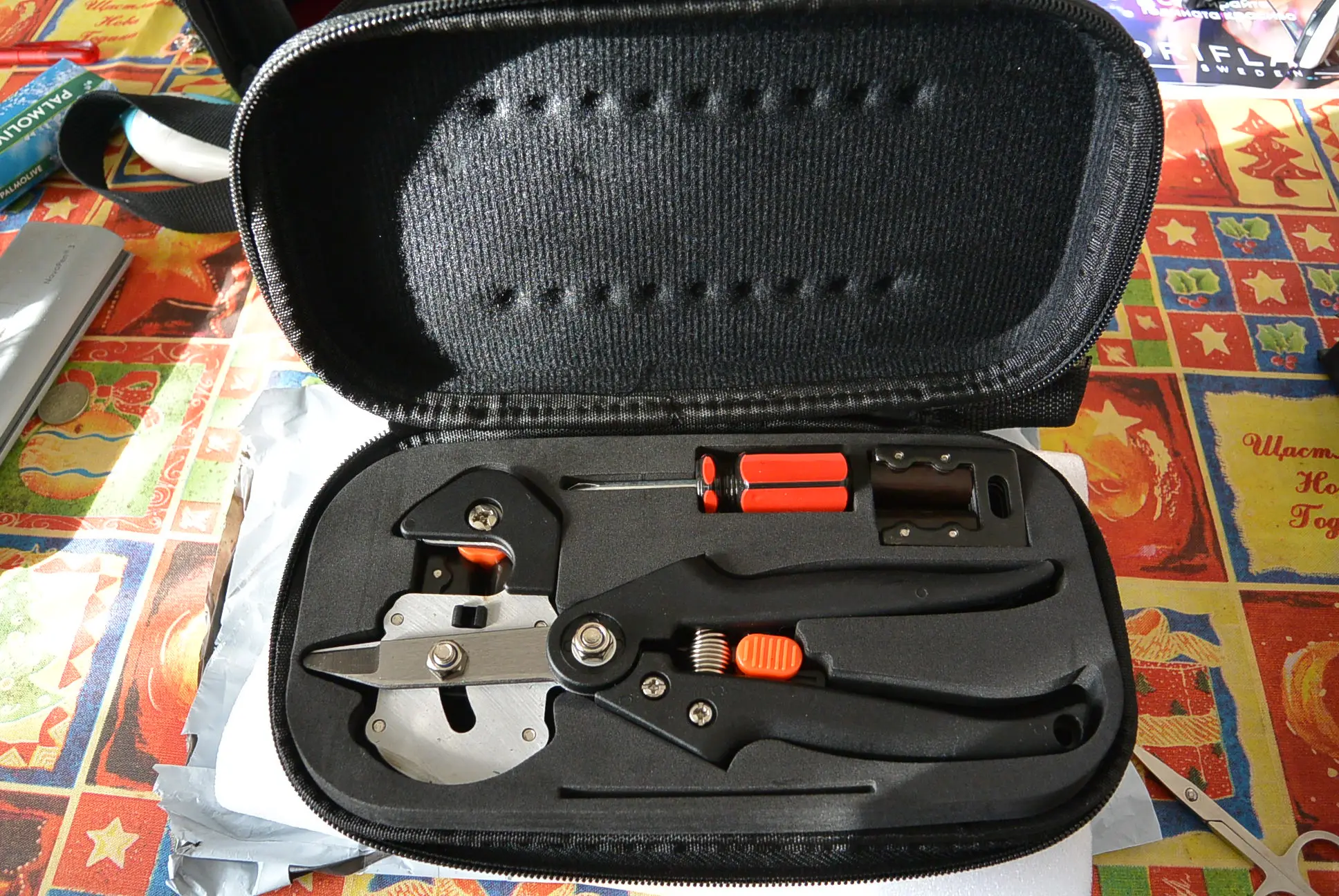 Все работает, но заточка так себе. Секатор надо перетачивать. Ножи для прививок делают красивый вырез. Рекомендую