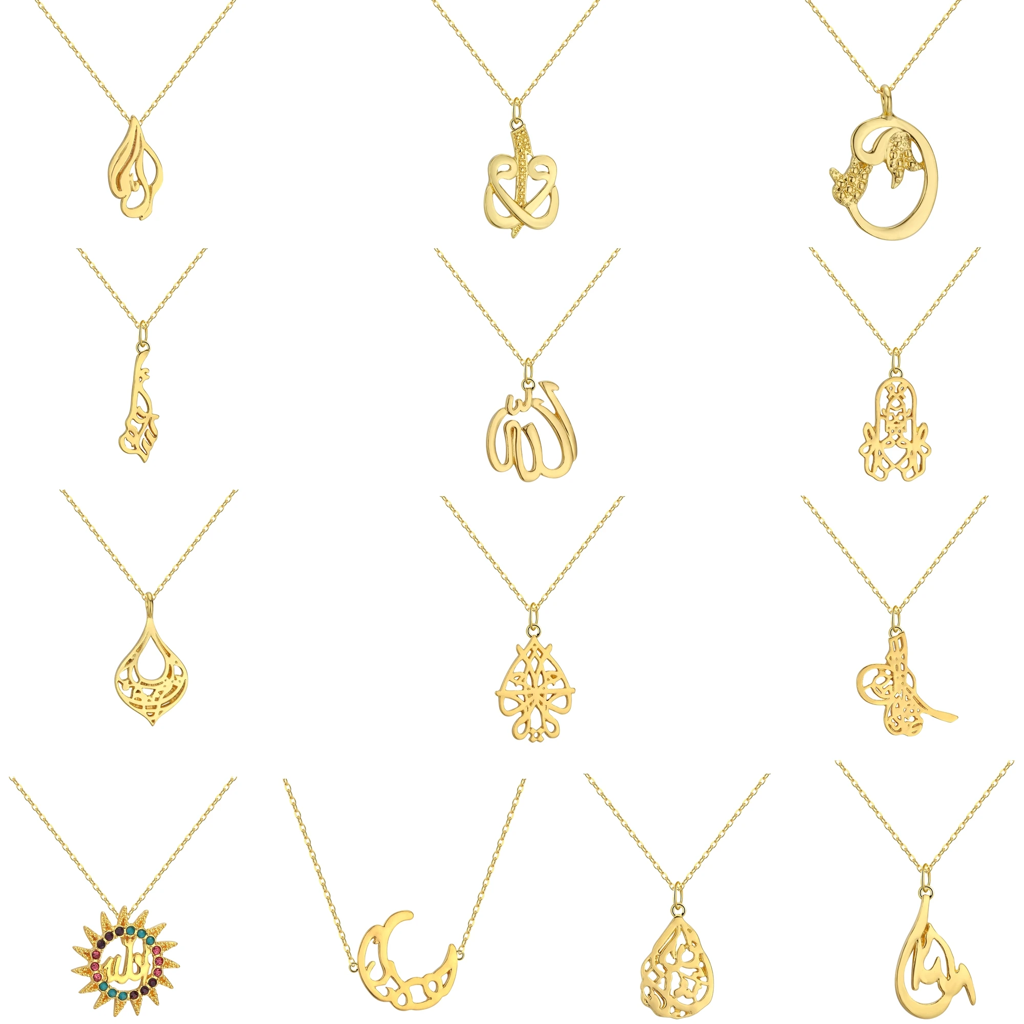 Золотое ожерелье QIAMNI с подвеской в виде Аллаха, женское мусульманское турецкое ожерелье-чокер, аксессуары в арабском стиле, религиозные украшения