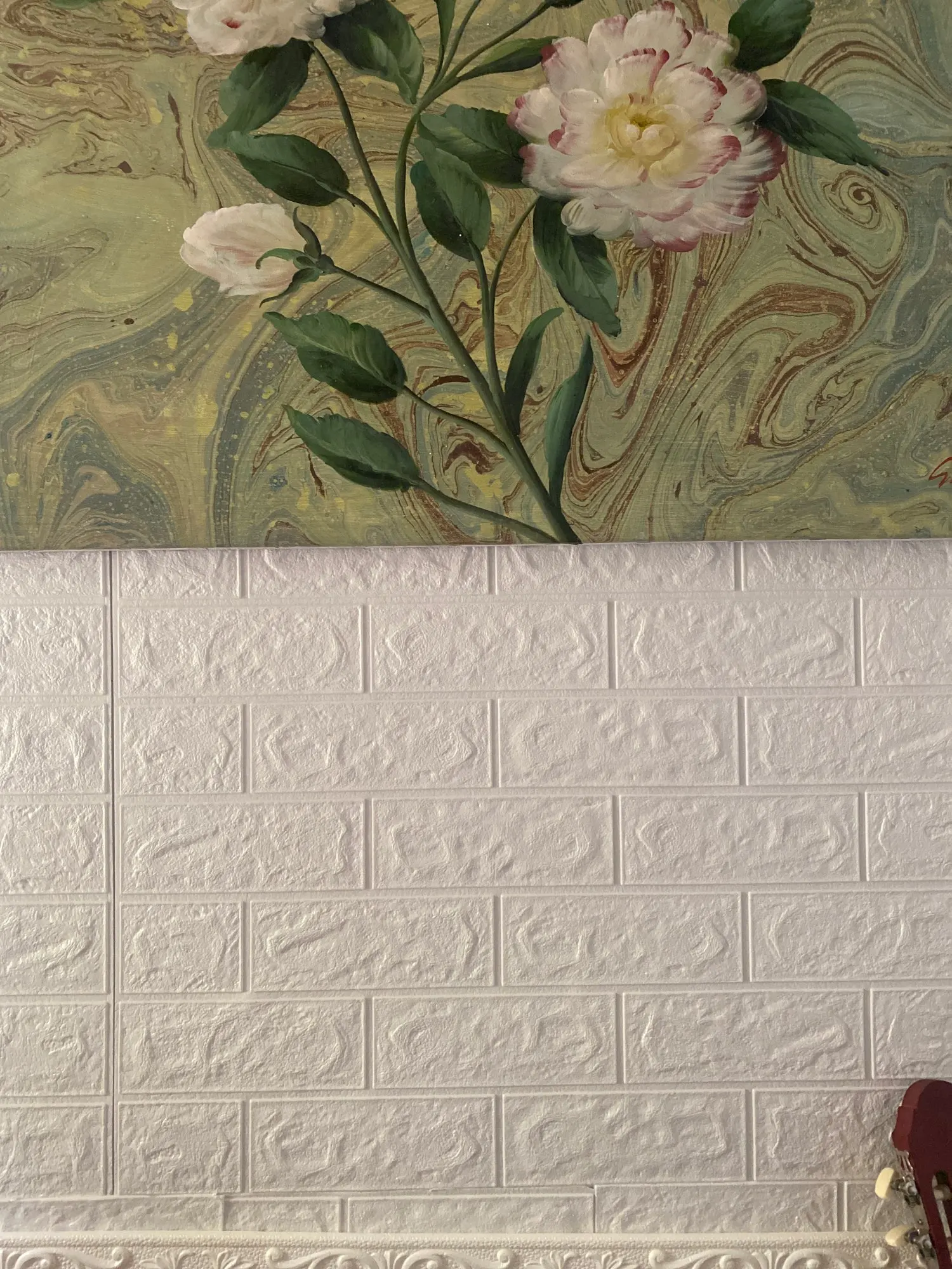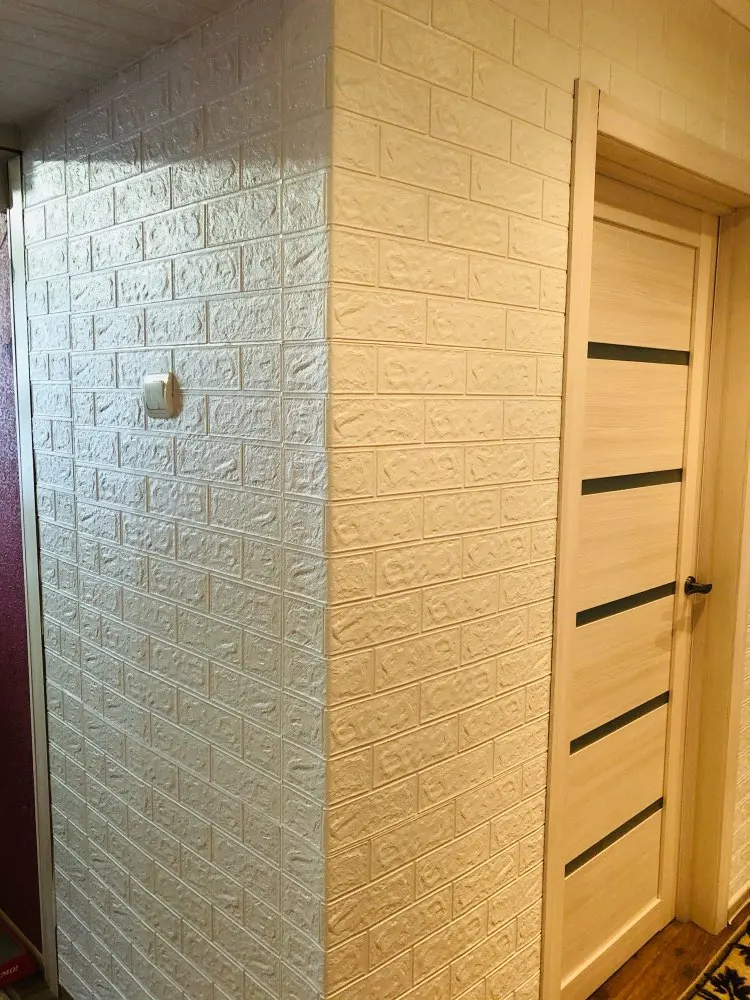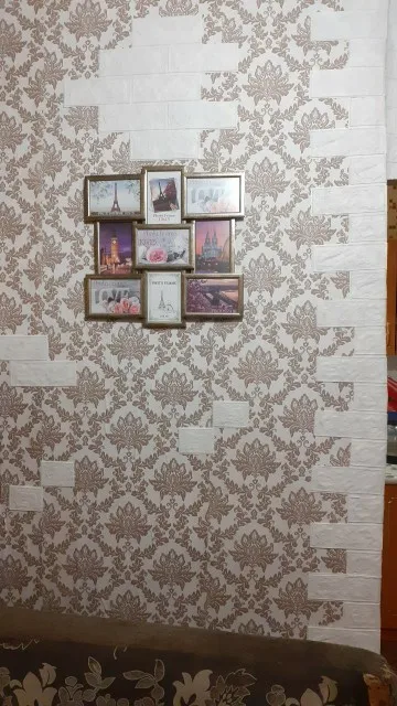 Товар пришёл очень быстро! Курьер доставил до дома. Всё как в описании, но, со временем мелкие кусочки подклеенные на углы, отклееваются.♀️ Если клеить целеком, то держится.♀️ В прицепе, не плохие обои. Ставлю 4