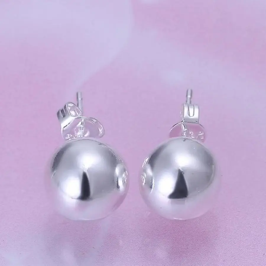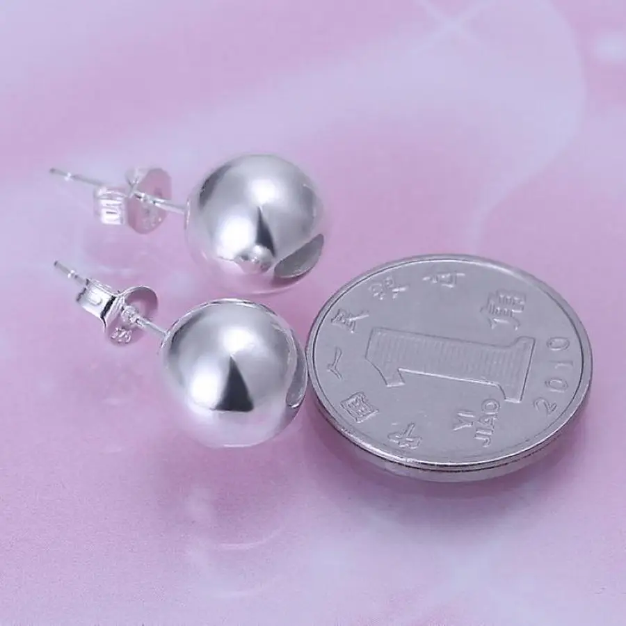 Женские серьги-гвоздики серебристого цвета, 10 мм