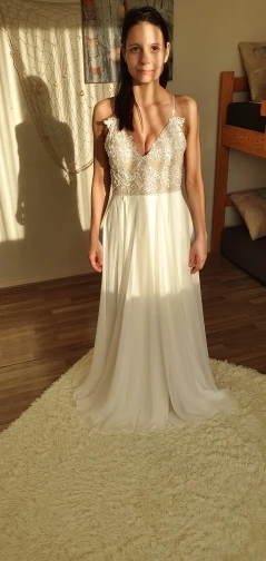 Очень классное платье!! Заказывала на свадебную церемонию в тёплой стране! Качество очень хорошее, сидит идеально, но размер все таки нужен меньше, заказала второе на размер меньше, это возможно продам. Размер нужен меньше, так как бюст маленький, немного не красиво смотрится, на фотографиях будет точно видно и не комфортно. Ушить не получится, поэтому выбирайте размер тщательно, продавец замечательный, отвечает на Сообщения и помогает с выбором, держит в курсе. Спасибо! Очень жду платье на размер меньше. Фото приложу когда придёт подходящее под мою грудь платье)))