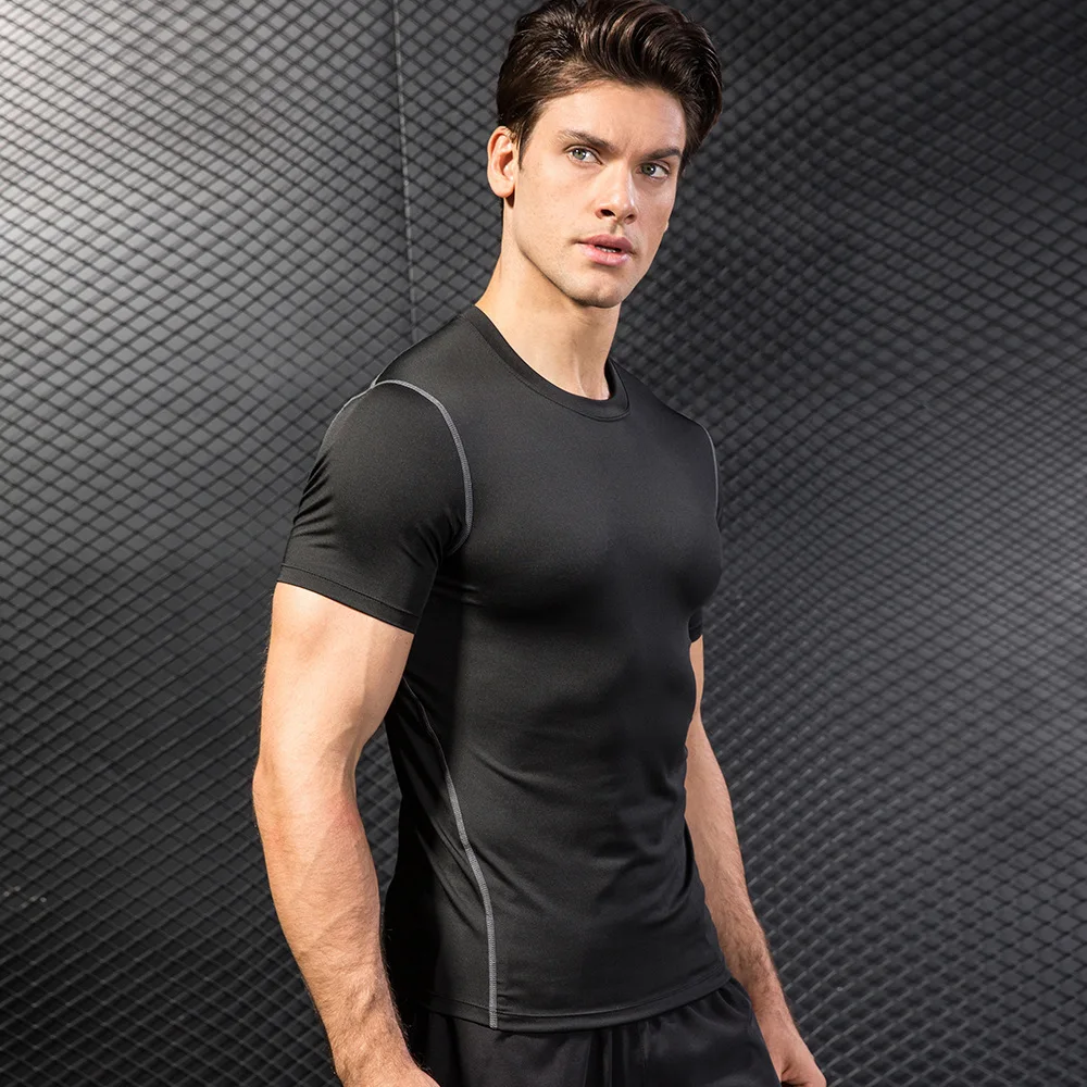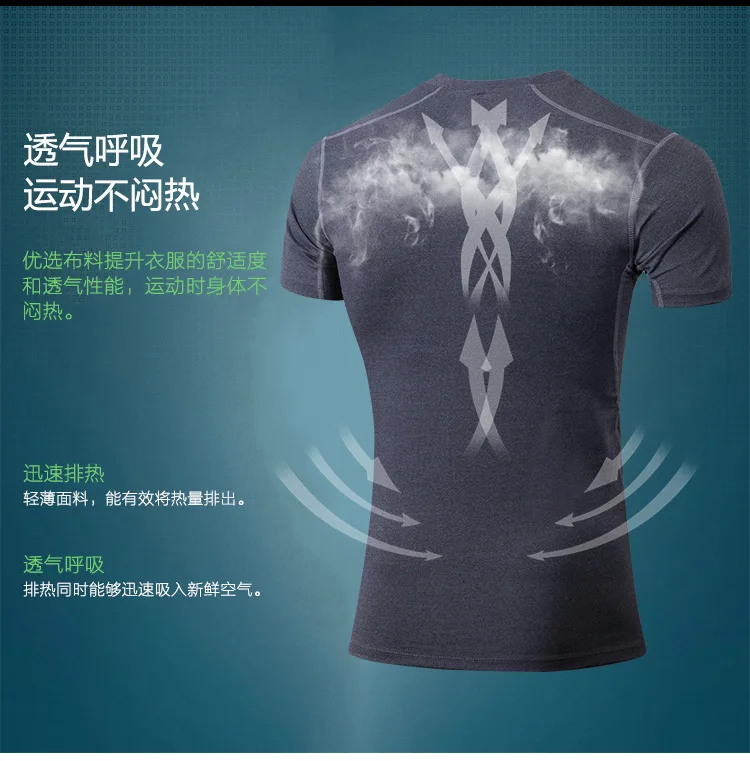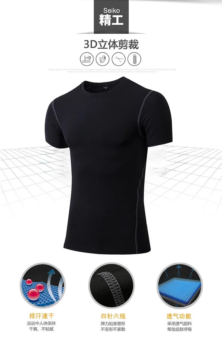 Мужская тренировочная одежда для бодибилдинга, одежда для бега с коротким рукавом, спортивная одежда, эластичная одежда для бодибилдинга, футболка 1003