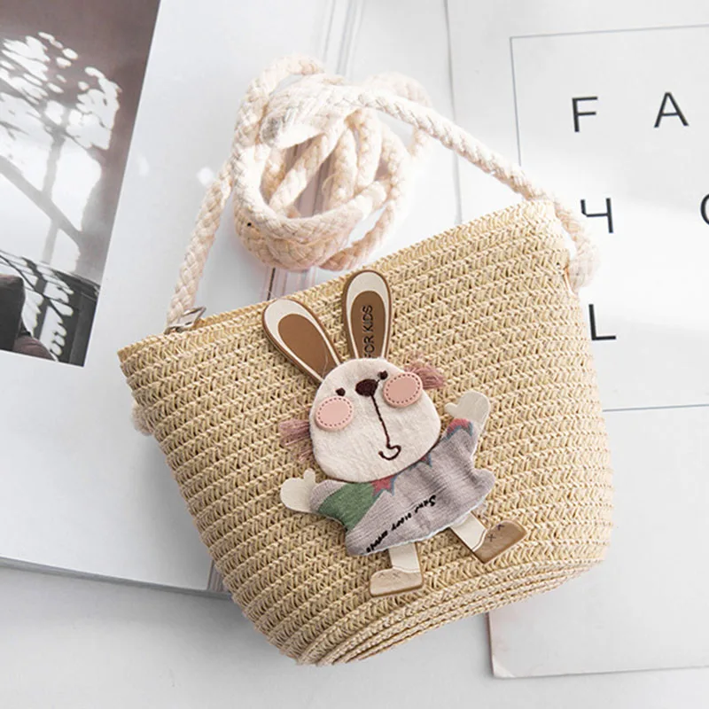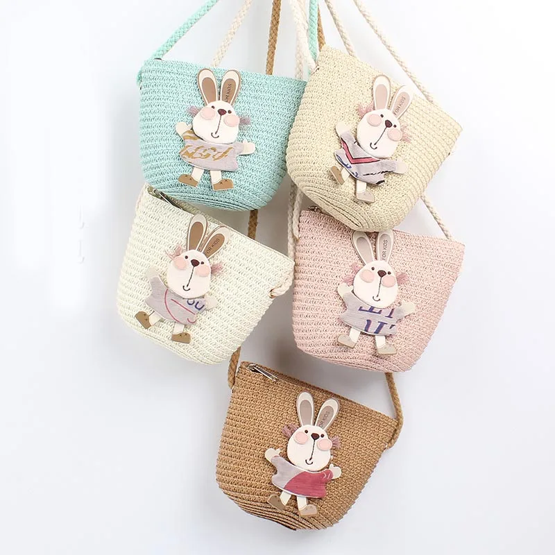 Новинка 2020, Детская сумка на плечо для девочек, Сумка с милым кроликом для соломенная мессенджер, Детский кошелек для ключей, Милая мини-сумка принцессы