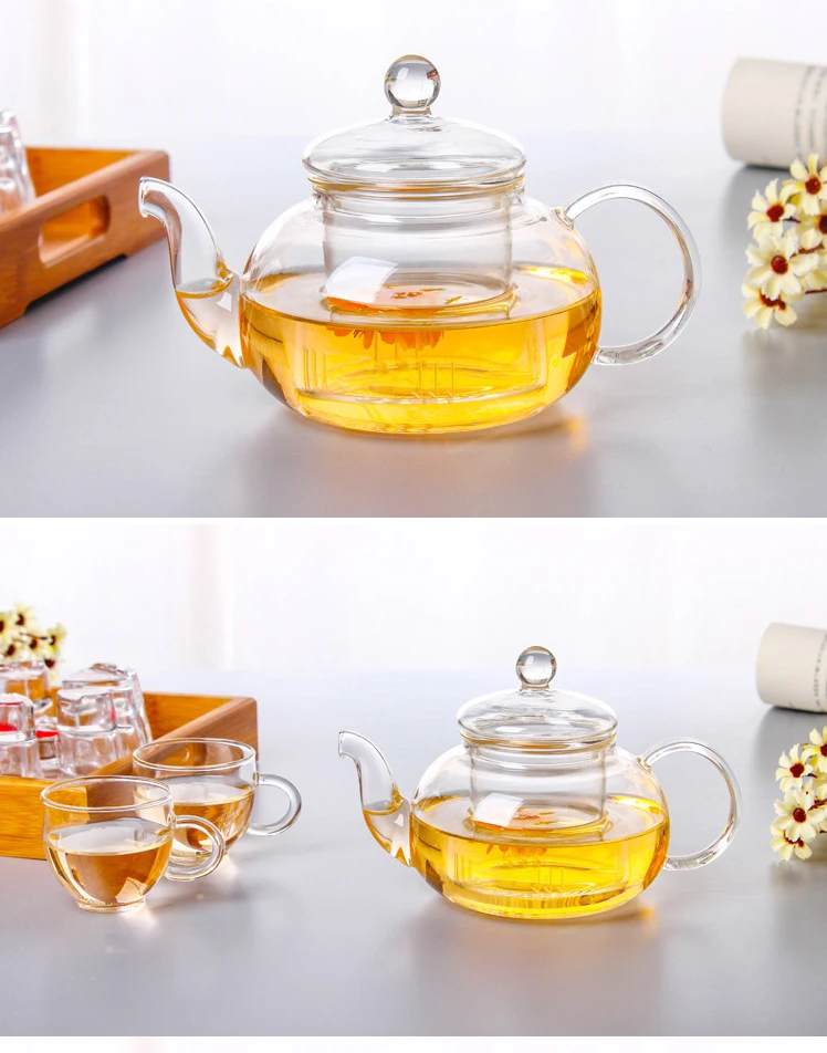 Термостойкий стеклянный цветочный заварочный чайник, стеклянная кру...