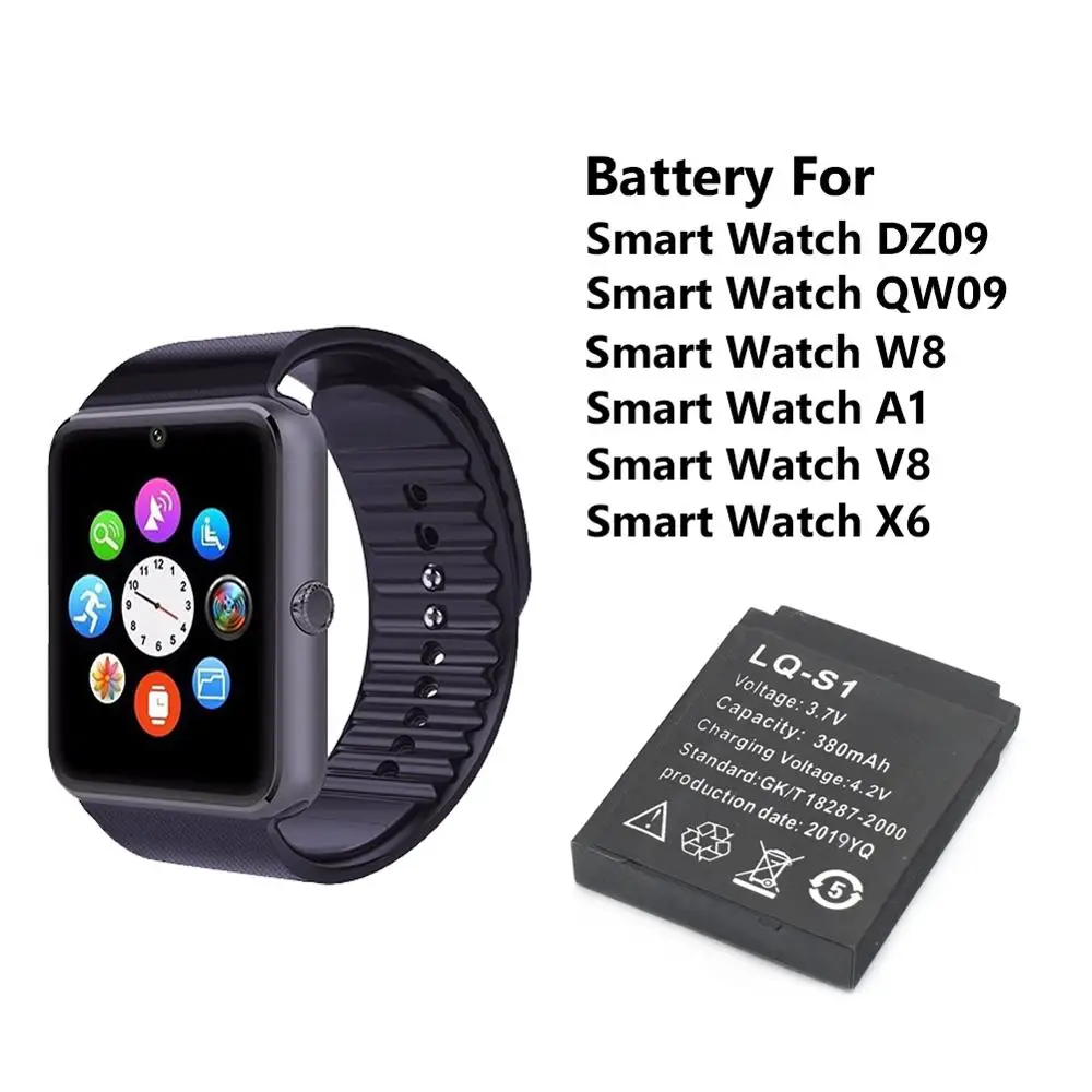 5810 шт. Прочный смарт-часы Батарея LQ-S1 3,7 V 380 мАч, литий Перезаряжаемые LQ S1 Батарея для смарт-часов QW09 DZ09 W8 lqs1