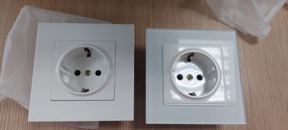 Розетка настенная с заземлением, 16 А, со стеклянной панелью