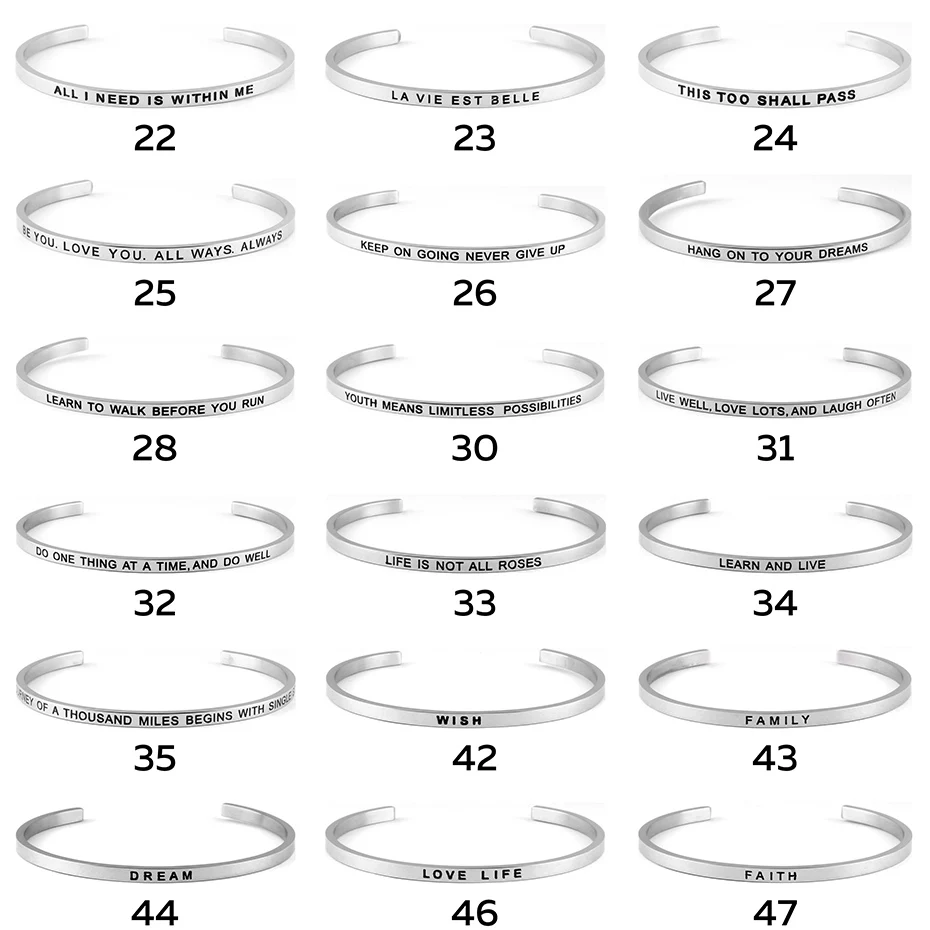 Вдохновляющий браслет на запястье из нержавеющей стали, с гравировкой 18 положительных фраз, браслет с мантрой ювелирные изделия для подруги, подарок