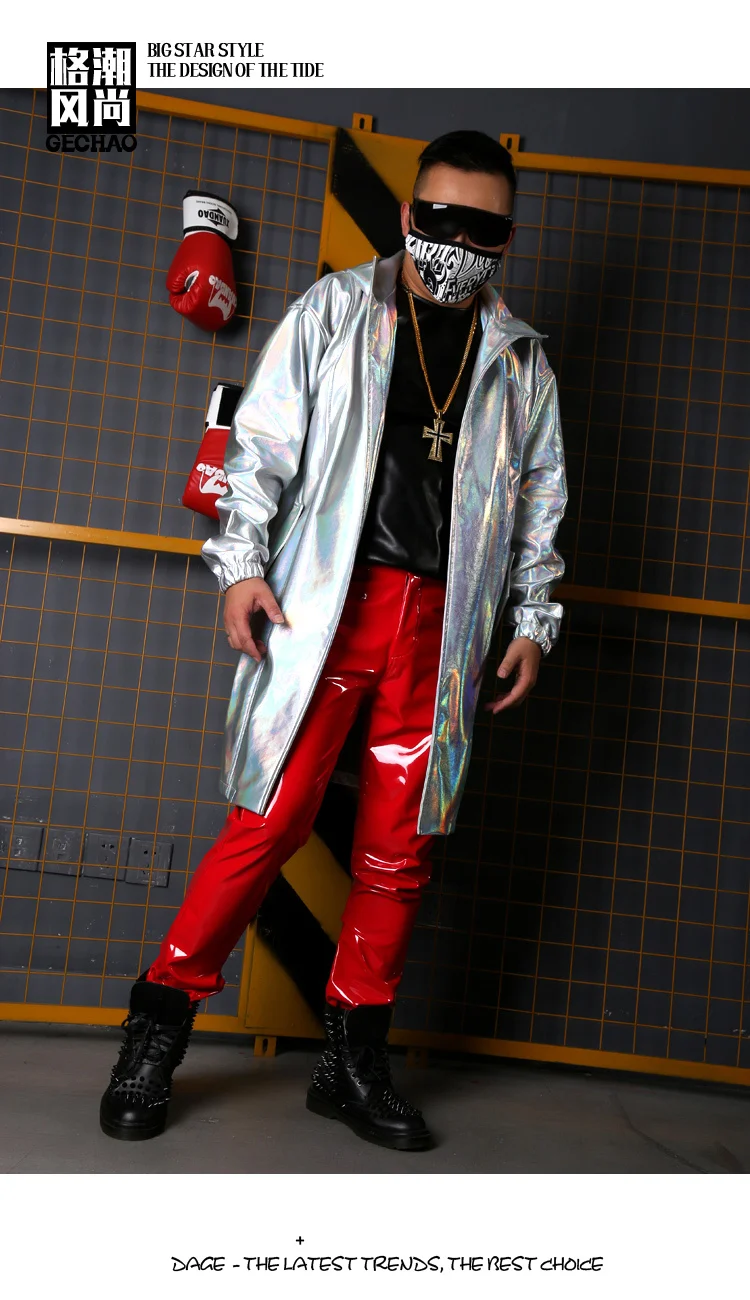 Сценические костюмы для певцов, танцев, диджеев, хип-хоп, можно настроить, сценические мужские брюки из лакированной кожи, мужские Модные приталенные брюки
