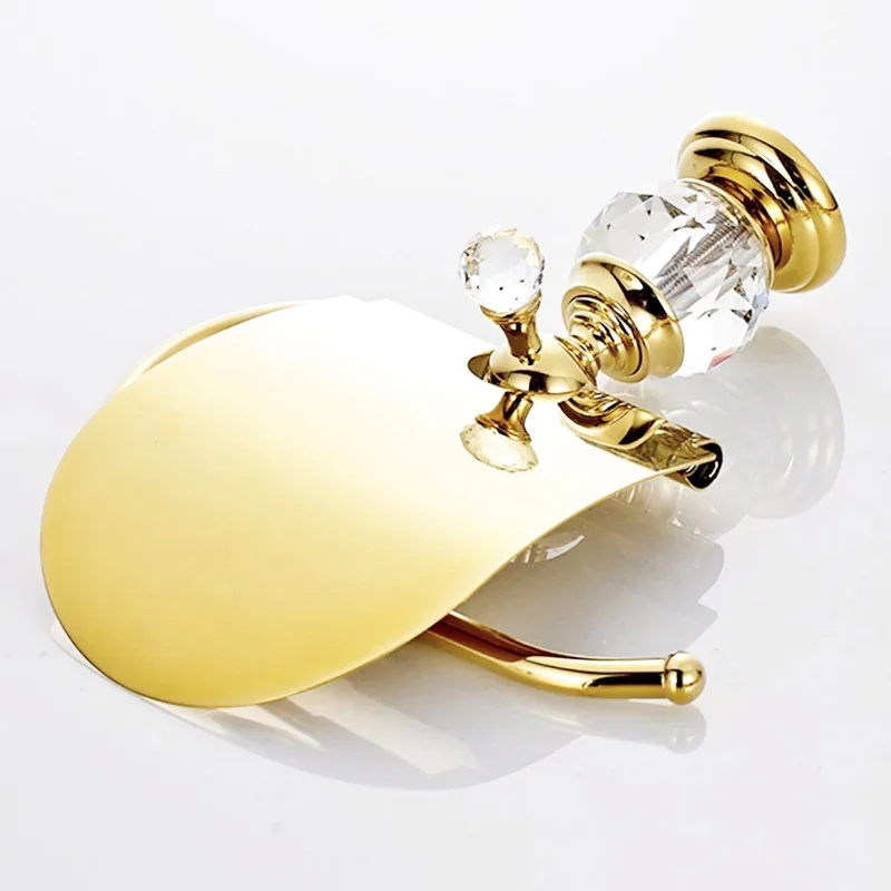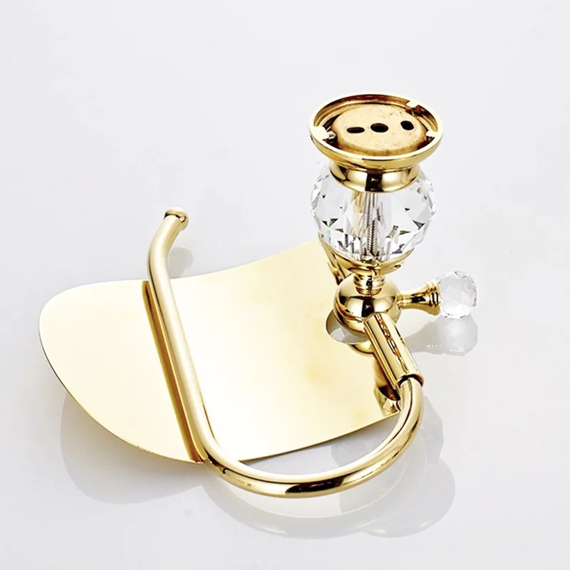 Держатель для туалетной бумаги Tuqiu, золотой Латунный держатель для туалетной бумаги, роскошный хрустальный декоративный водонепроницаемый держатель для салфеток