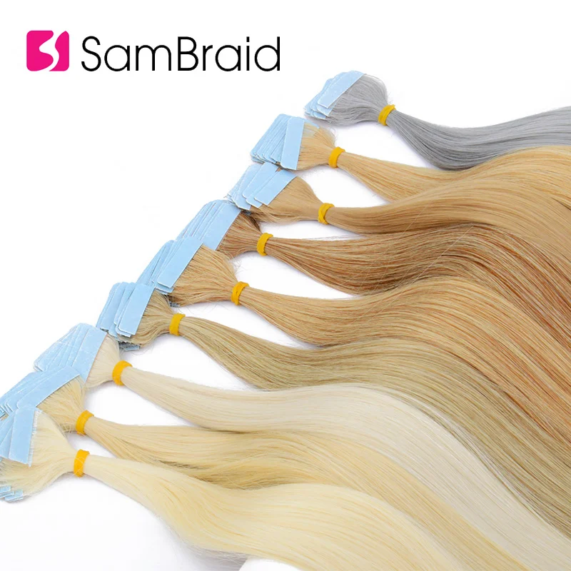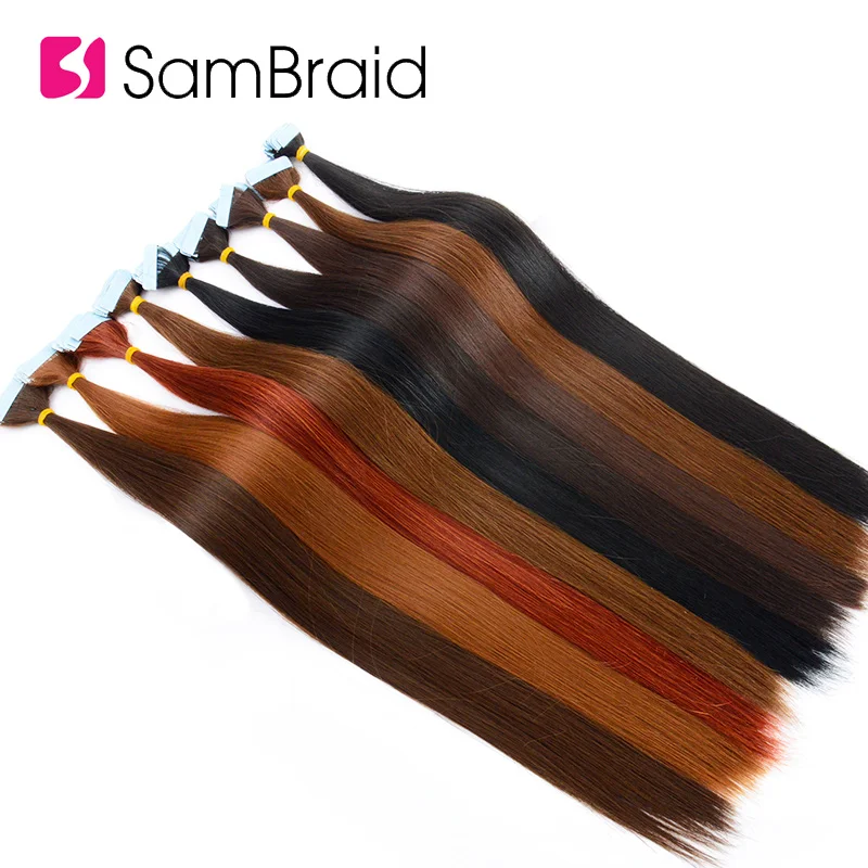 SAMBRAID прямо прямые волосы на Клейкой Ленте имитирующей кожу 22 дюйма 40 шт.упак. Синтетические пряди для наращивания волос на ленте Однотонная одежда Двухсторонняя клейкая лента