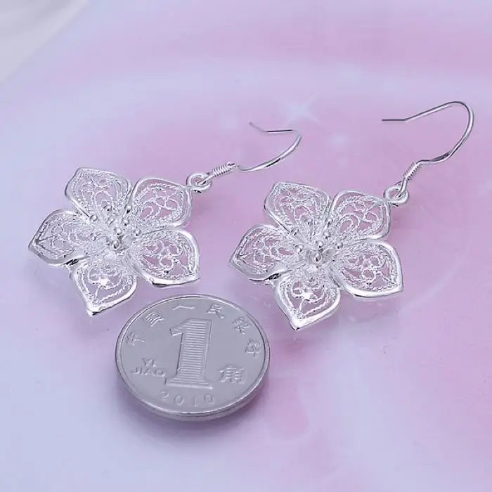 Серьги из серебра 925 пробы с изображением элегантных цветов для женщин, милые популярные красивые модные серьги для вечеринок, ювелирные изделия для свадебвечерние НКИ для женщин