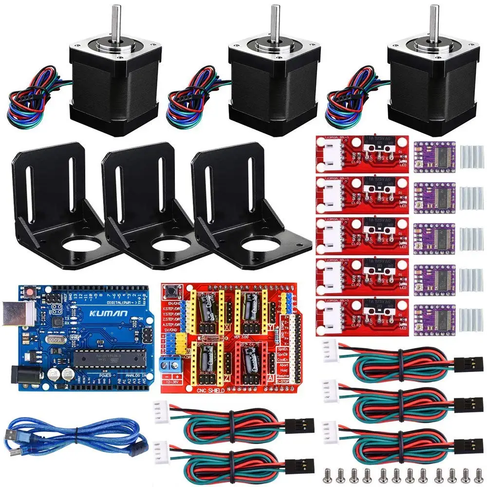 Комплект для 3D-принтера с ЧПУ, для Arduino GRBL Shield + плата UNO R3 + Рампы 1,4, механический переключатель, концевой упор + драйвер двигателя DRV8825 + двигатель Nema 17
