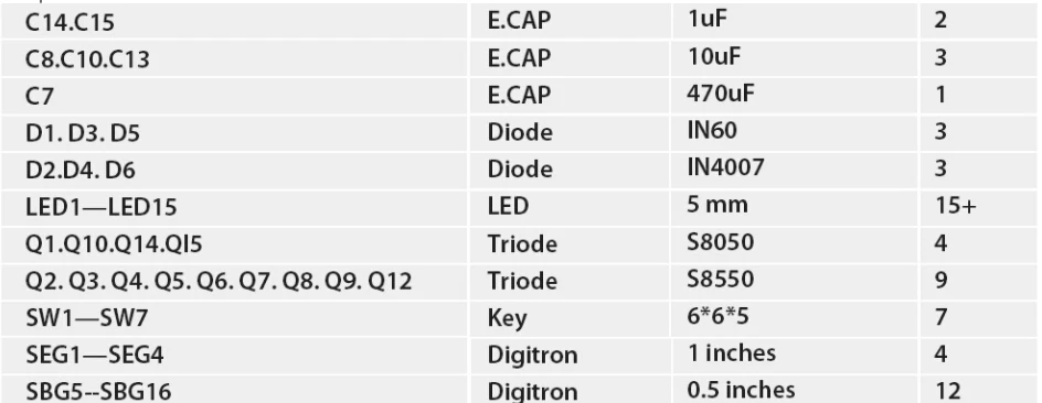 4. Список компонентов: