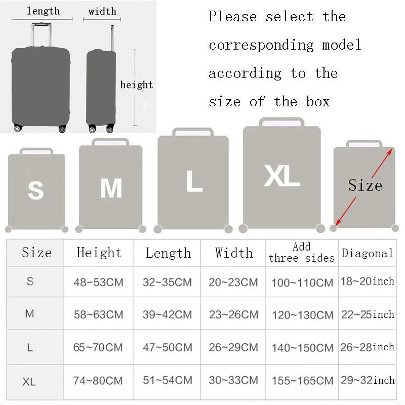 Примечание: Я продаю только крышку, а не коробку. Пожалуйста, выберите соответствующую модель в соответствии с вашим чемоданом. Используйте сумму трех сторон, чтобы выбрать более точно. Материал: эластичная ткань Цвет: как на фото • Преобразование: 1 дюйм = 2,54 см, 1 см = 0,393 дюйм (ов) Из-за ручного измерения возможны незначительные отклонения на 1-3 см. Размер: Размер S: подходит для чемодана 18-20 дюймов Размер M: подходит для чемодана 22-25 дюймов Размер L: подходит для чемодана 26-28 дюймов Размер XL: подходит для чемодана 29-32 дюймов Примечание: размер может быть выбран в соответствии с размером багажника Если вы покупатель из России, пожалуйста, заполните полное имя получателя (три части) К вашему заказу, до того, как вы разместите заказ, если не почтовое отделение вернет вашу посылка. И мы не принимаем возврат средств для заказа без полного имени.