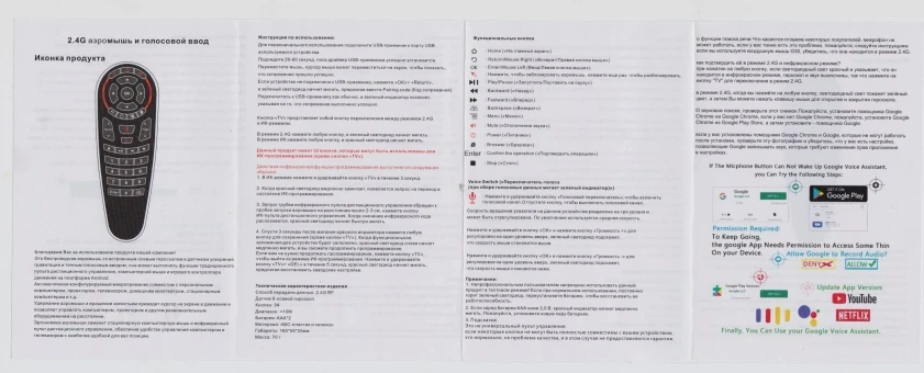 По ir не программируются кнопки мыши и голоса (на пульте lg magic remote это есть, но не переносится). В радиорежиме на приставке голос - гугл ассистент. А так - норм, как замена стандартному пульту приставки - шикарно. Пришло быстро, упакованно на троечку, коробка мятая. Батареек нет. Угол ir небольшой, дальность - дальше 5 метров кнопки через раз срабатывают. Опять же по радио таких проблем нет.
