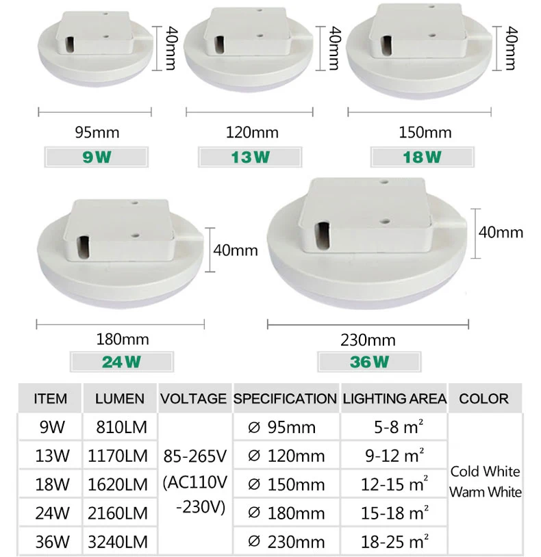 Светодиодная панельная лампа, потолочный светильник 9 Вт, 13 Вт, 18 Вт, 24 Вт, 36 Вт, Светильник направленного света с поверхностным креплением, современная лампа для светильник щения AC 85-265 в