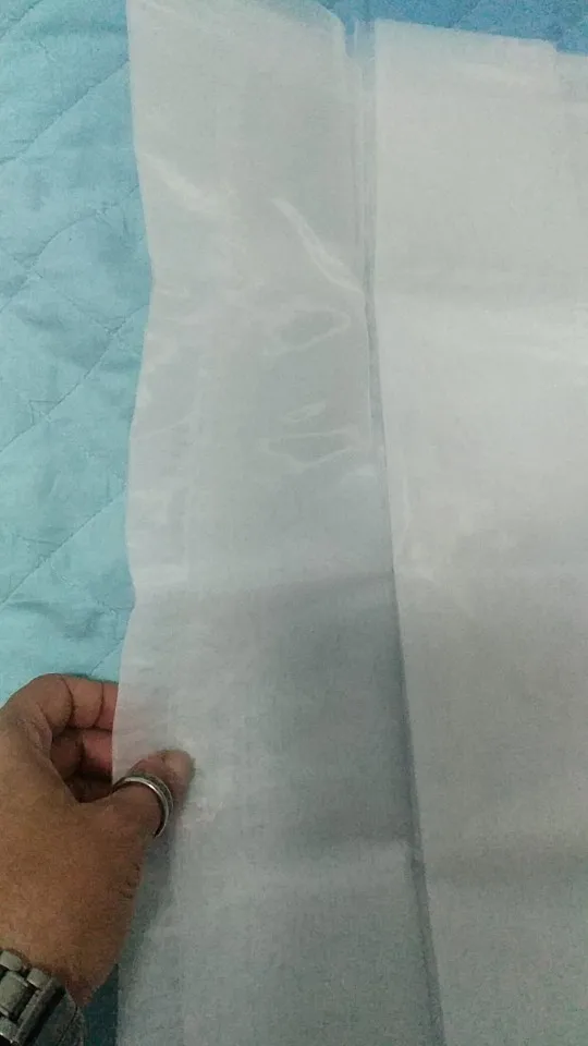 Заказ дошел за 1,5 месяца, трек отслеживался. Размер оказался чуть меньше - 1м х 96 см, края обрезаны неровно. Запаха нет. Пробовал фильтровать настойку фруктов на спирте, фильтрует неплохо, но очень медленно.