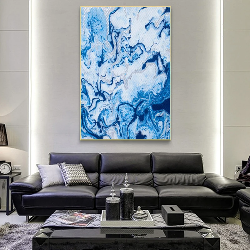 Картина на холсте, с абстрактным изображением голубой волны, для гостиной, без рамки, художественные плакаты и принты