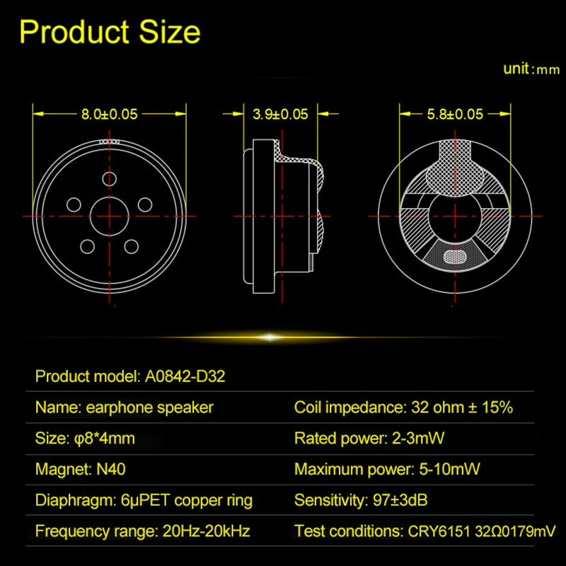 Несколько материалов диафрагмы, такие как ПЭТ, ПЭИ, Пэк, перо, композитная пленка, титановая пленка. Сделайте музыку меняющейся динамичной, с четкой вибрацией напряжения и упругости, достаточно, чтобы покорить ваши взыскательные уши.