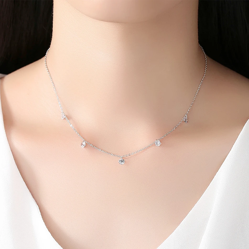 Ожерелье из стерлингового серебра 100% пробы с кубическим цирконием, регулируемые ожерелья для женщин, изящная Подарочная бижутерия, 5 шт.