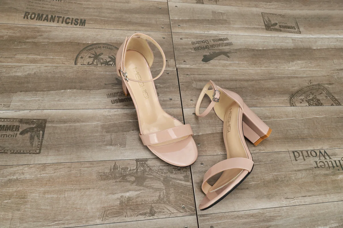 Женские босоножки из лакированной кожи, сандалии на высоком устойчивом каблуке 8 см, вечерняя обувь, классические офисные туфли, большие размеры, H0038, лето 2020