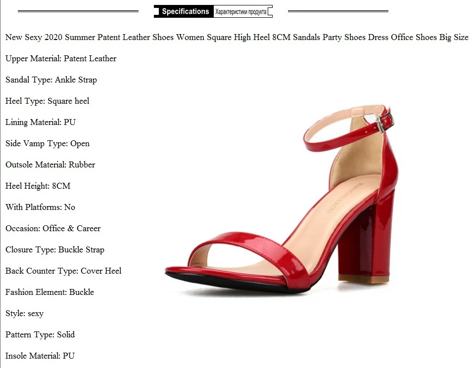 Новинка; Пикантные летние туфли из лакированной кожи; Женские босоножки на высоком квадратном каблуке 8 см; Вечерние модельные туфли; Офисная обувь; Большие размеры; 2020