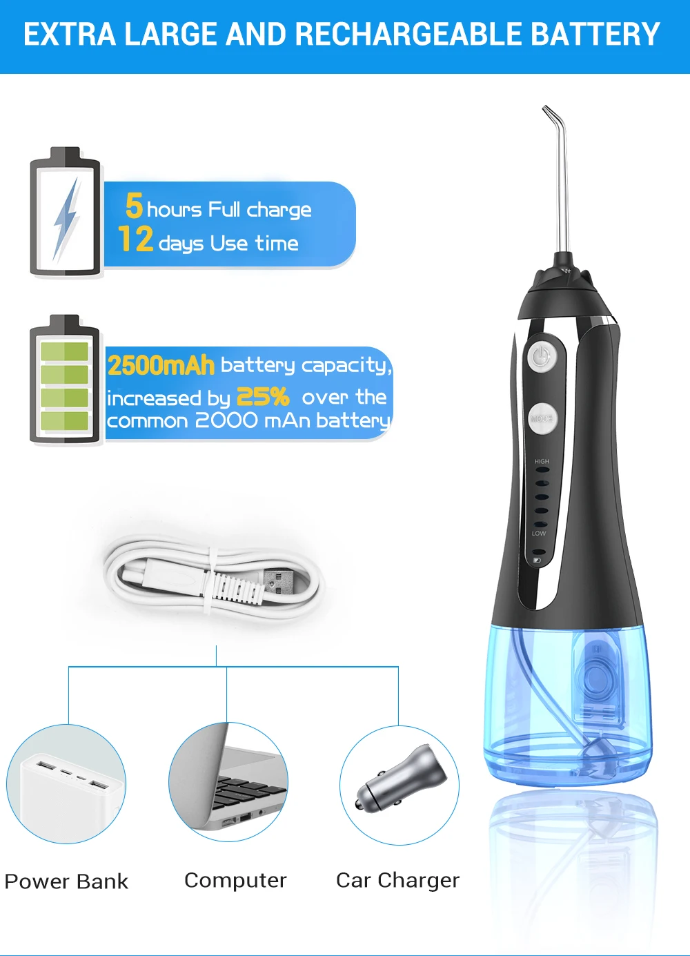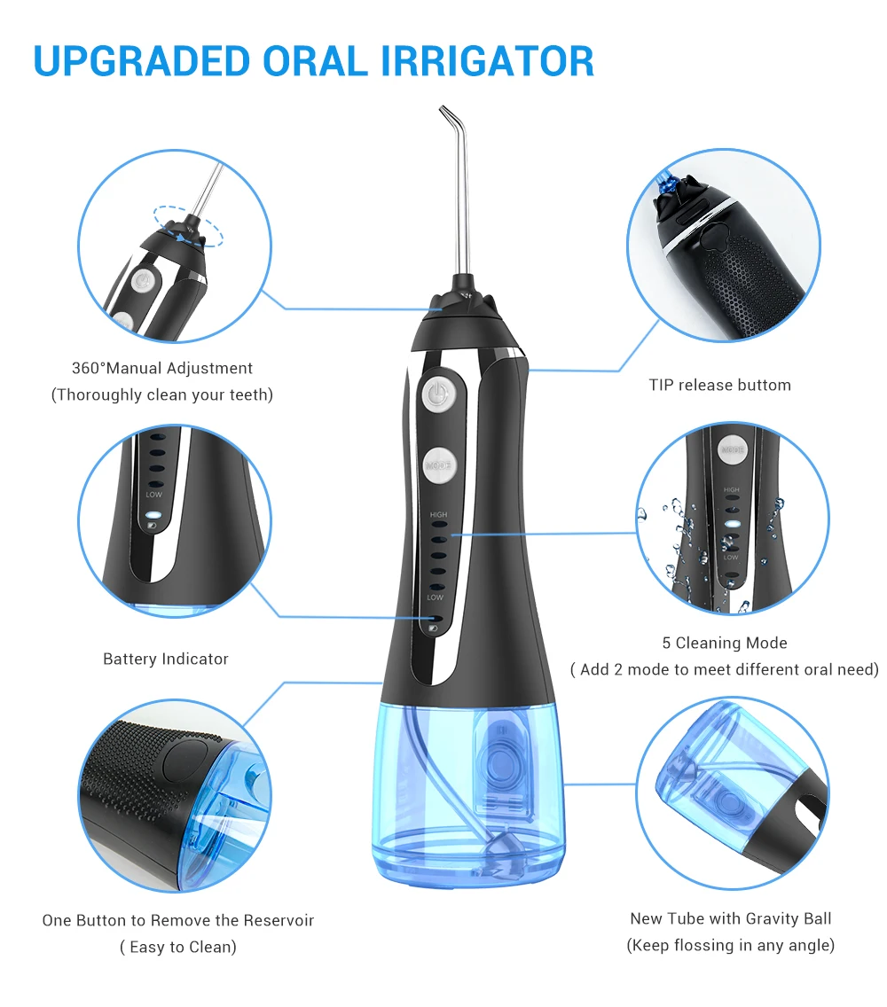 Ирригатор для полости рта, 300 мл, 5 моделей, с зарядкой от usb