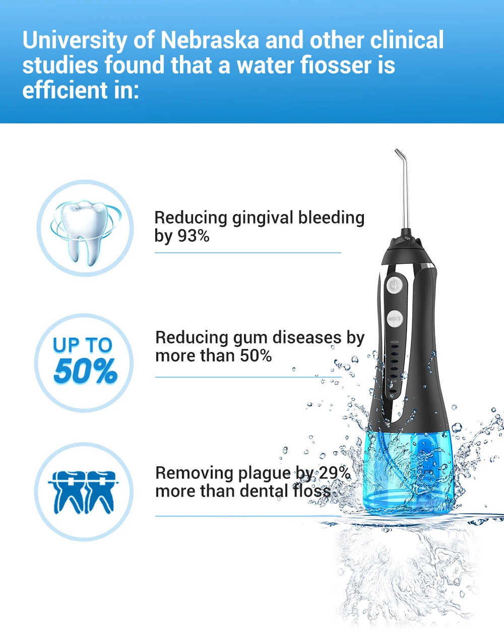 Пищу между зубов выбивает отлично, сейчас десны кровоточат. Через месяц добавлю.