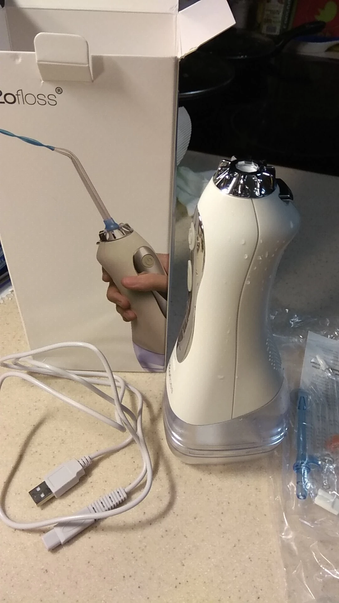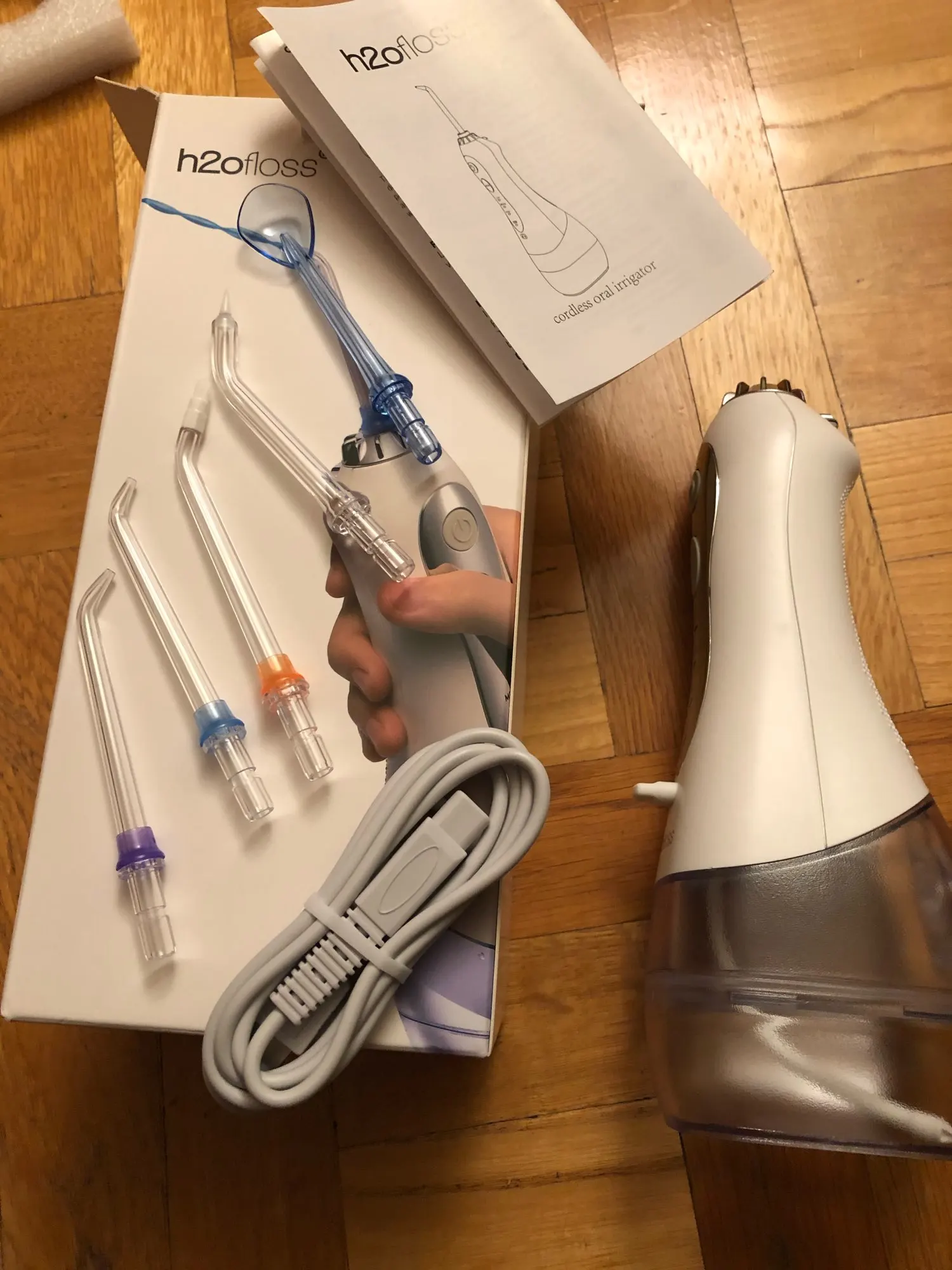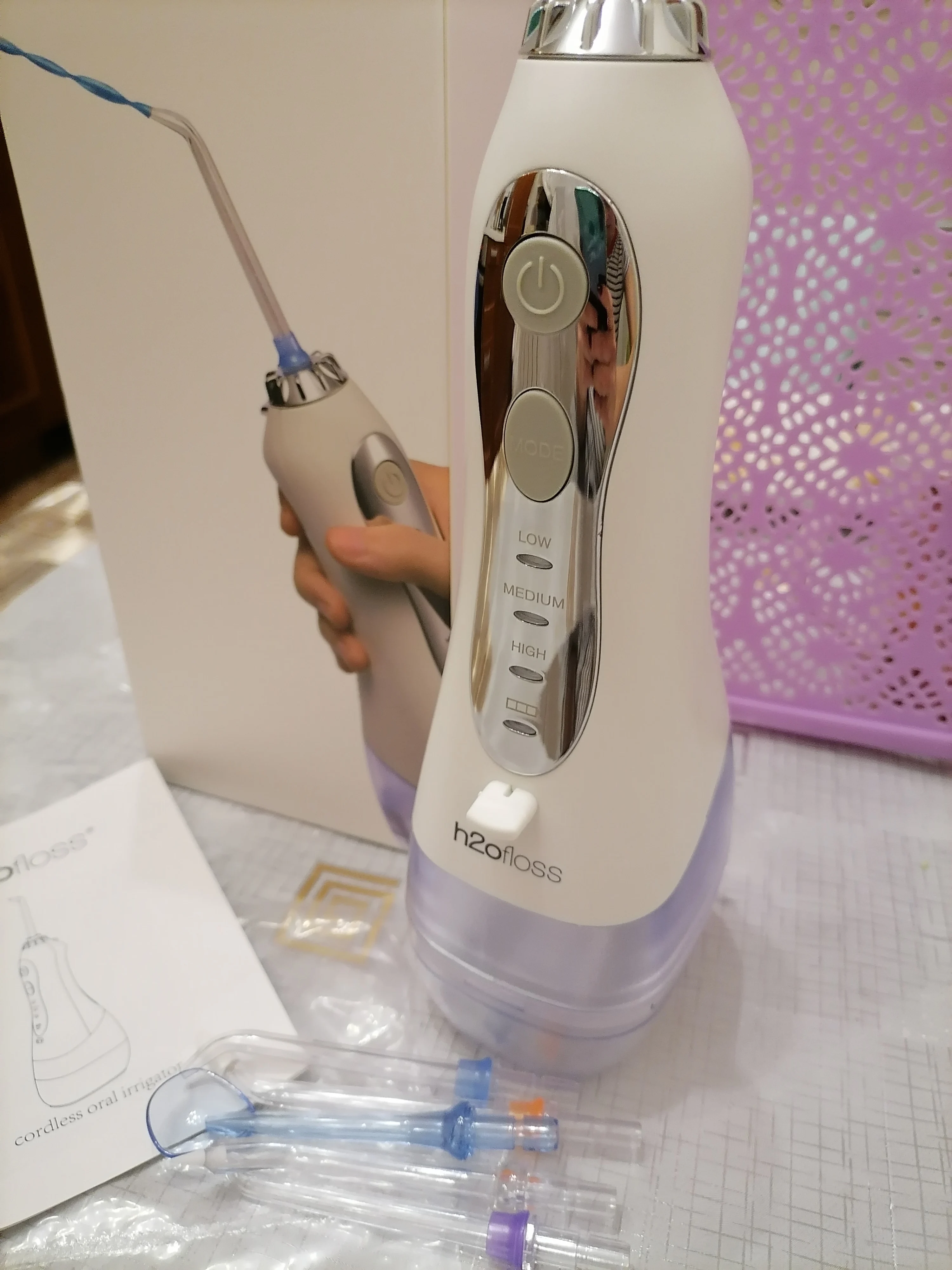 товар очень приличный, дизайн, комплектация, есть маленькие минус маленький резервуар и очень непривычно после стационарного ирригатора, на зато прибор мобилен и компактен(относительно), что важно для путешествий, доставка быстрая, вообще очень доволен, спасибо
