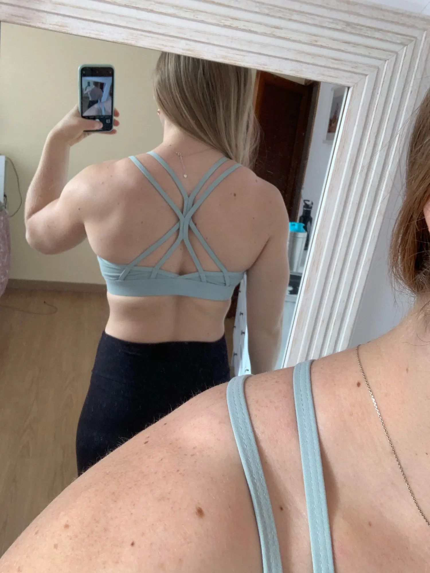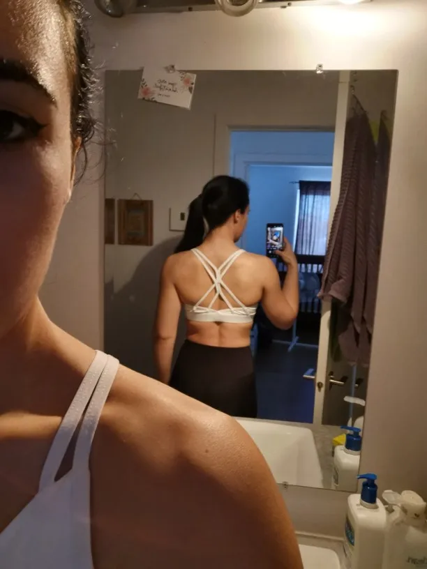 Заказал черный и белый в большом размере, и я 34a. Достаточно места для тех, у кого есть грудь. Мне не нравится, что он слишком тугой, поэтому этот размер мне подошел, ремешок не слишком тугой. Милый крест-накрест.