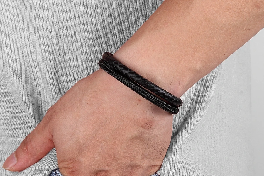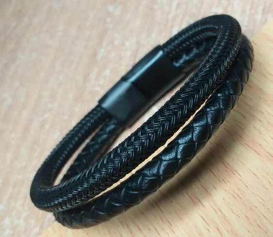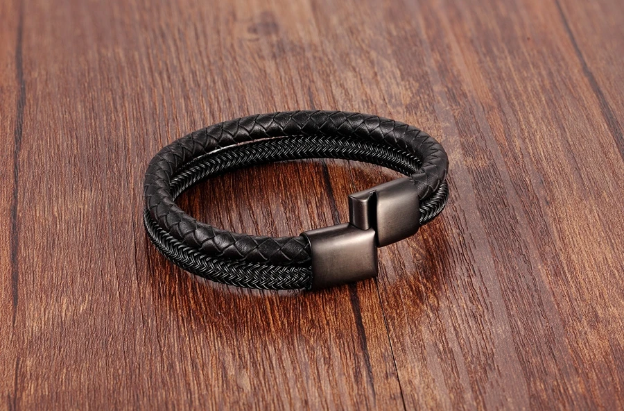 Мужской кожаный браслет XQNI, классический, из нержавеющей стали, с чернойстальной пряжкой, аксессуары для вечерние, подарок