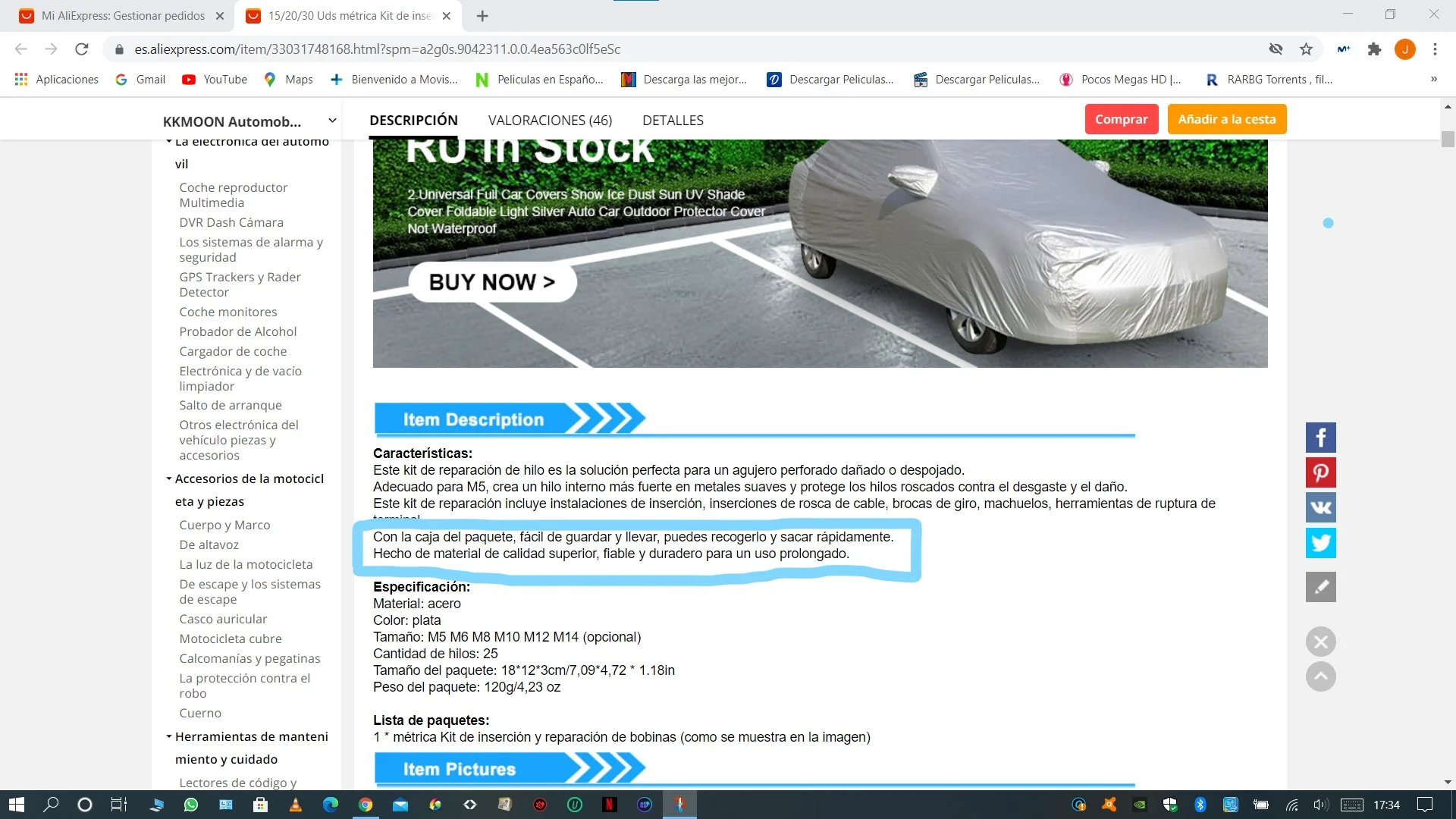 Страна: CL Color: M8-1.25 Доставка: Standard Shipping 19.11.2020