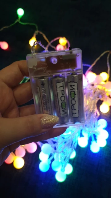 Супер клевая гирлянда! Пришла быстро и в целости. Батарейки пальчиковые.