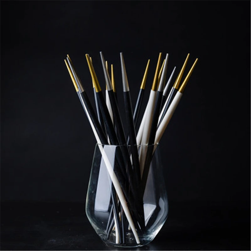 Роскошные золотые круглые палочки для еды из нержавеющей стали, для ресторана, дома, отеля, суши, лапша, многоразовые палочки для еды, набор посуды 15 пар