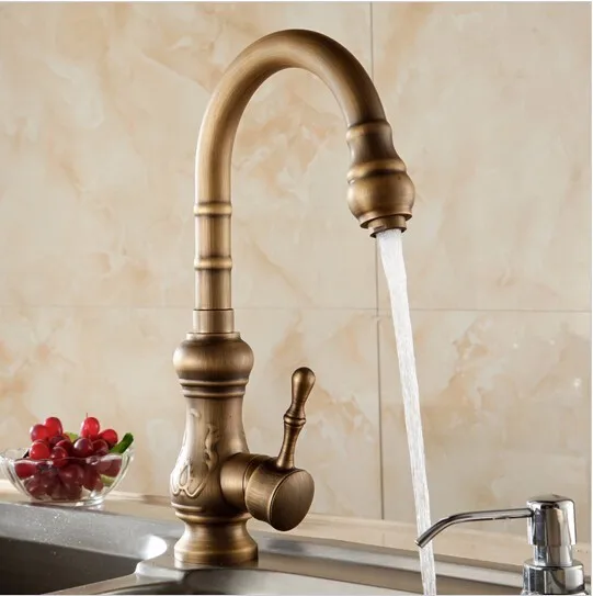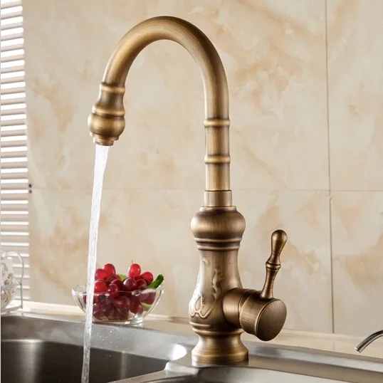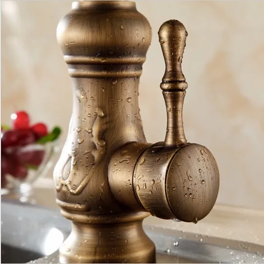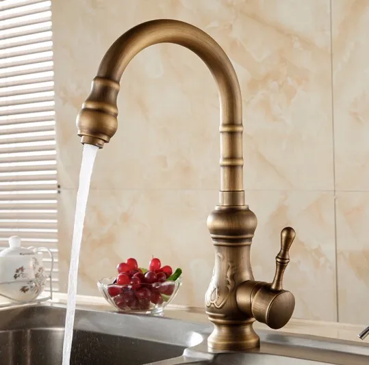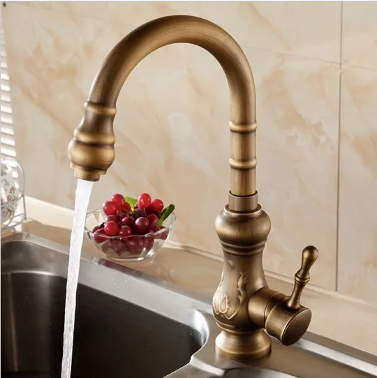 Новое поступление, античный латунный Смеситель для кухни с бронзовой отделкой, кран для воды, кухонный поворотный носик, смеситель для раковины, смеситель с одной ручкой
