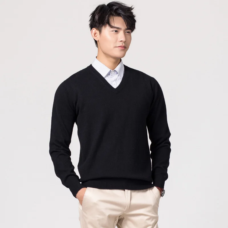 Пуловер мужской из кашемира и шерсти, зимний, с V-образным вырезом, модель LM023
