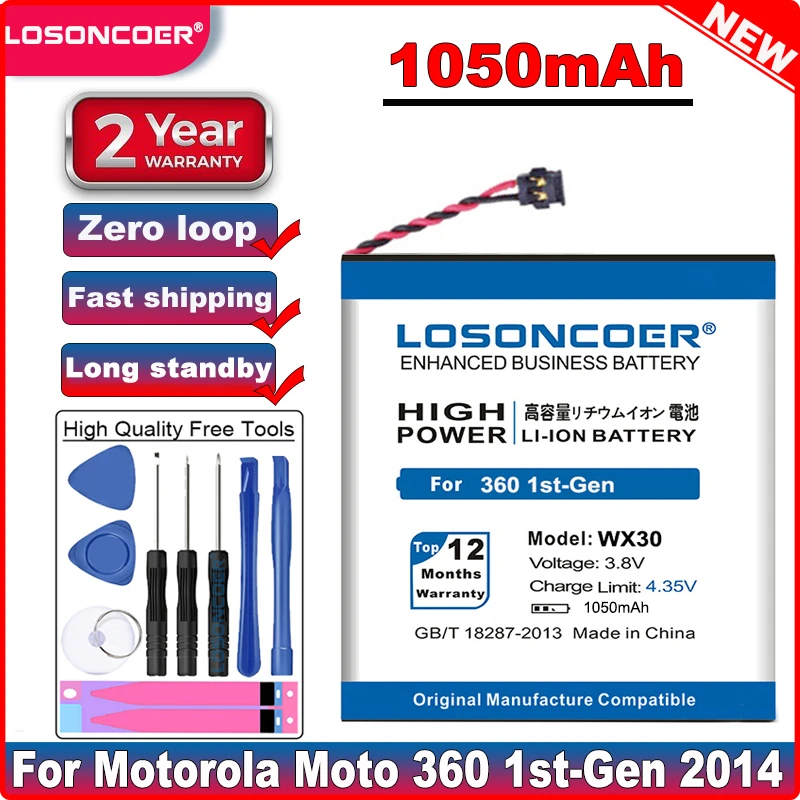 LOSONCOER 1050 мАч SNN5951A WX30 батарея для Motorola Moto 360 1st-Gen 2014,Moto 360 1st Gen батареи Смарт-часы