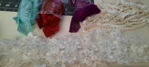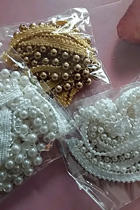 1 ярдовпартия, белыйчерный жемчуг, отделка бисером, кружевная лента...