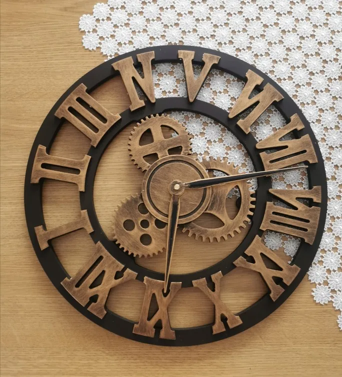 3D большие классические винтажные деревянные настенные часы Ретро шестеренки Подвесные часы с римскими цифрами Horologe Европейский стиль Декор для гостиной