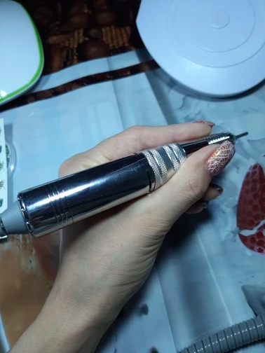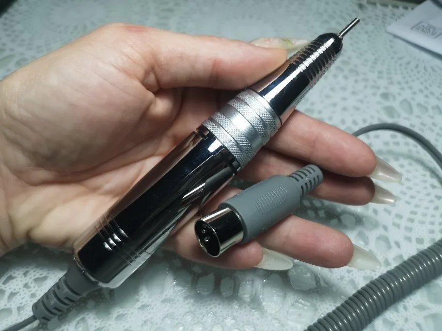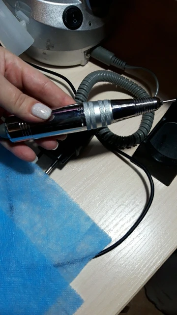 Пришла быстро. Вес имеет, но на работу это не влияет, так как у оригинала маратон ручка ещё тяжелее. Тихая, пахнет от неё каким то смазочным средством, муж таким в гараже пользуется снимает отлично, не вибрирует, сколько проработает не знаю, но пока все устроило. Скорость выполнения маникюра выросла. Кстати ручка не греется, был поток на весь день 5 клиентов, даже намёка не было на нагрев, есть обдув.