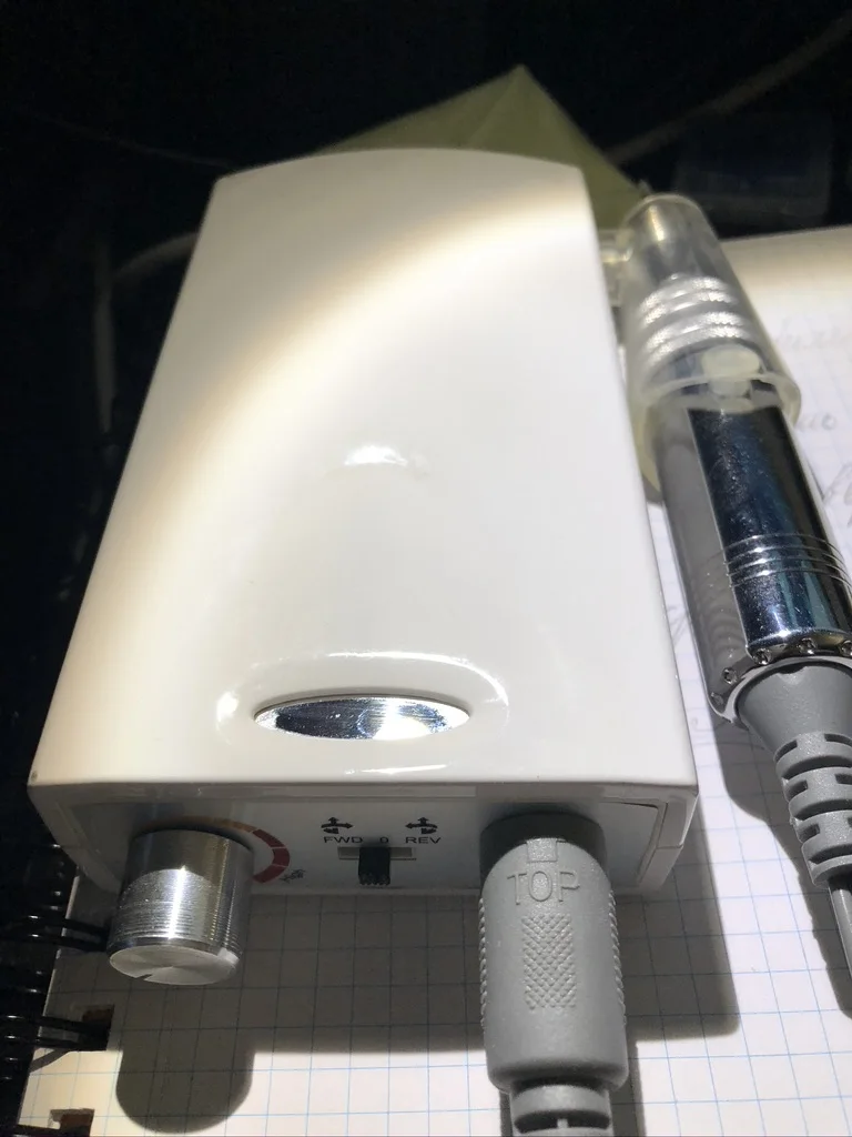 Ручка очень тихая, мощная. Попробовала на себе, биений по ногтю нет. Очень даже достойная, за такие деньги оригинал не найдёшь. Посмотрим на сколько хватит в работе, но пока что все устраивает